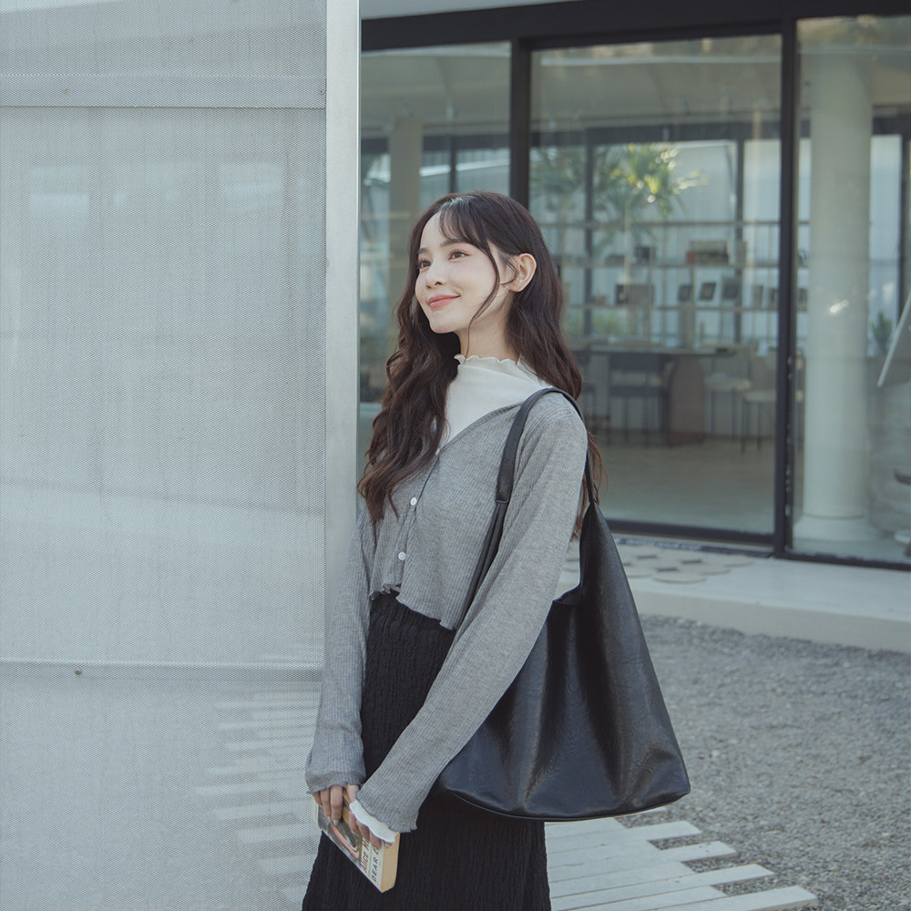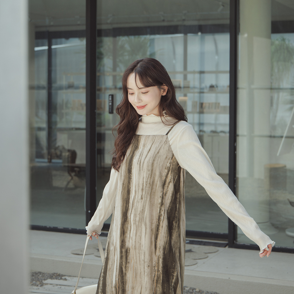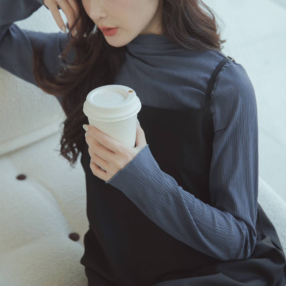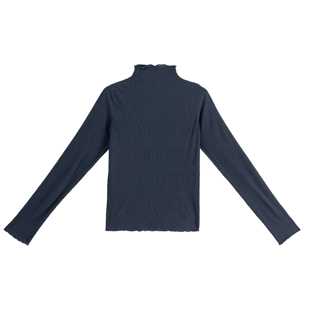 QUEENSHOP 2025秋冬新品女装木耳边细褶坑条高领透肤上衣01051467