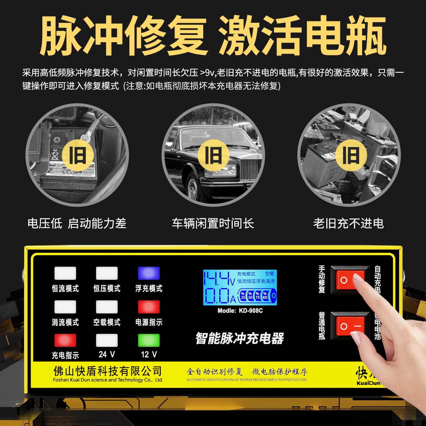 汽车电瓶充电器12v24v伏摩托车充电全智能自动修复型蓄电池充电机