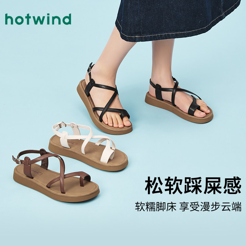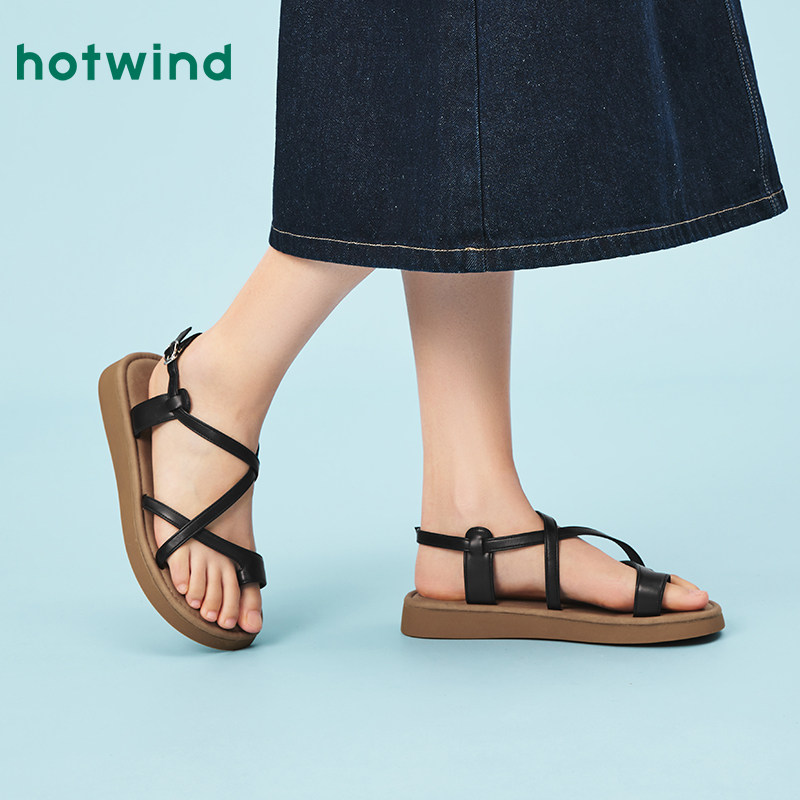 热风复古时装凉鞋女鞋2025年夏季新款女士时尚夹趾百搭鞋子平底鞋