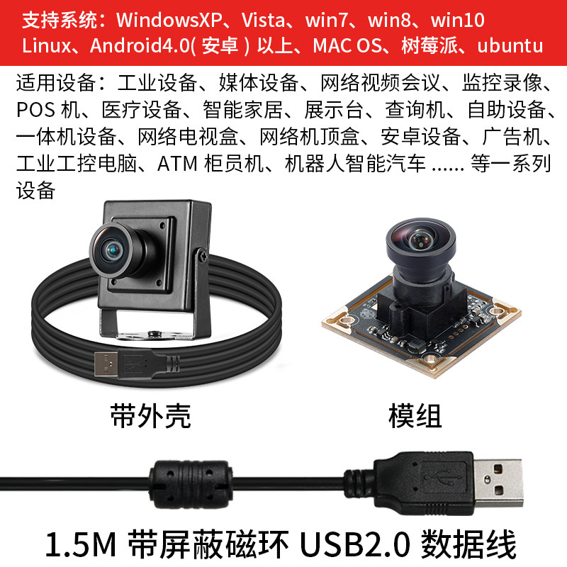 usb工业摄像头1080p广角鱼眼H264低照度安卓liunx电脑星光级X001