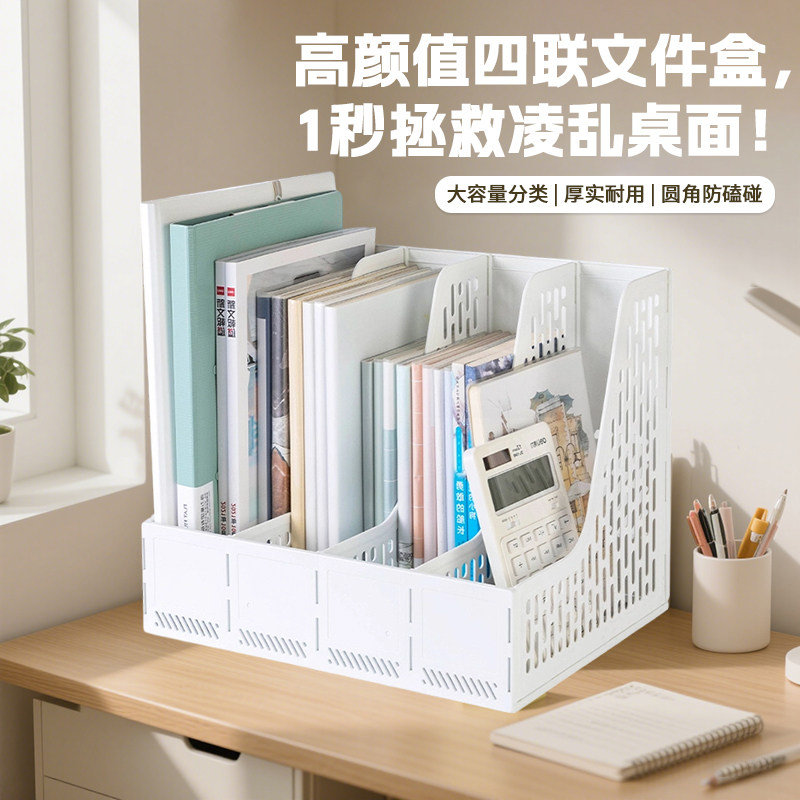 得力加厚文件框文件收纳盒塑料文件架书架简易立式书立书架桌面办公用品文件夹文件盒桌上资料架办公用品