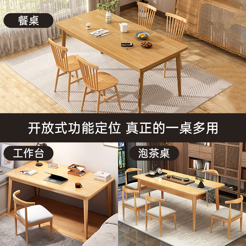 实木腿餐桌家用小户型长方形吃饭桌子商用餐桌椅组合橡木茶桌收纳