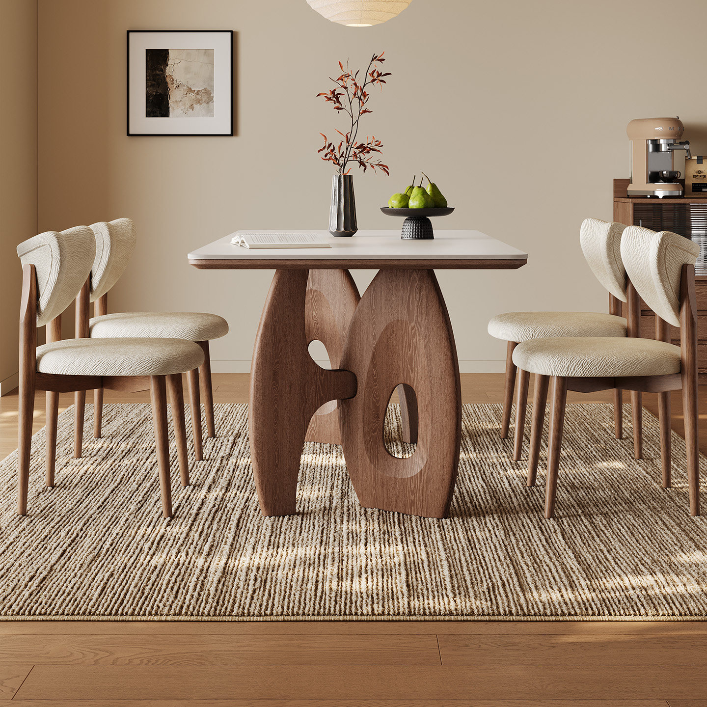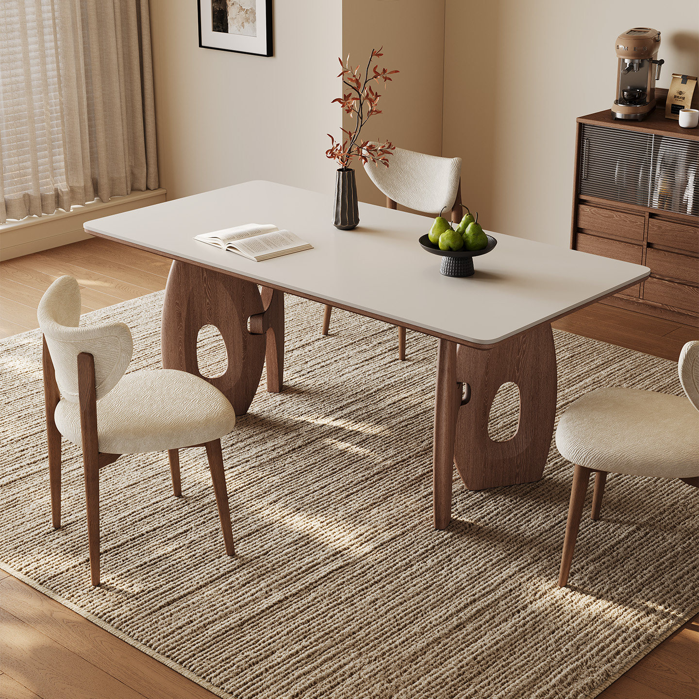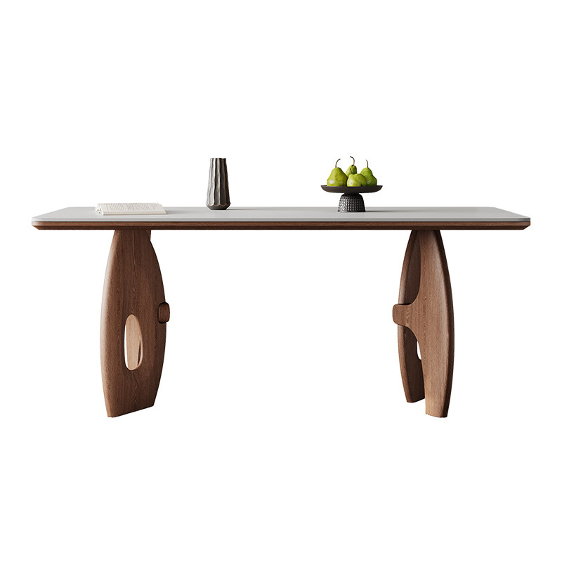中古风岩板餐桌长方形2025新款家用餐厅一桌四椅胡桃木色实木餐桌