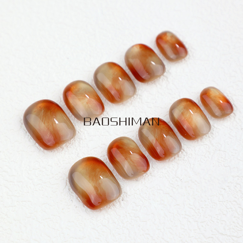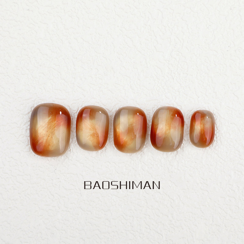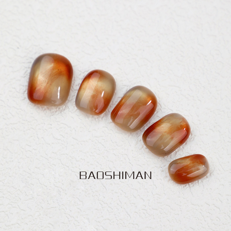 宝诗曼纯手工穿戴甲红玛瑙ins风穿戴甲小众琥珀色美甲豆豆高级