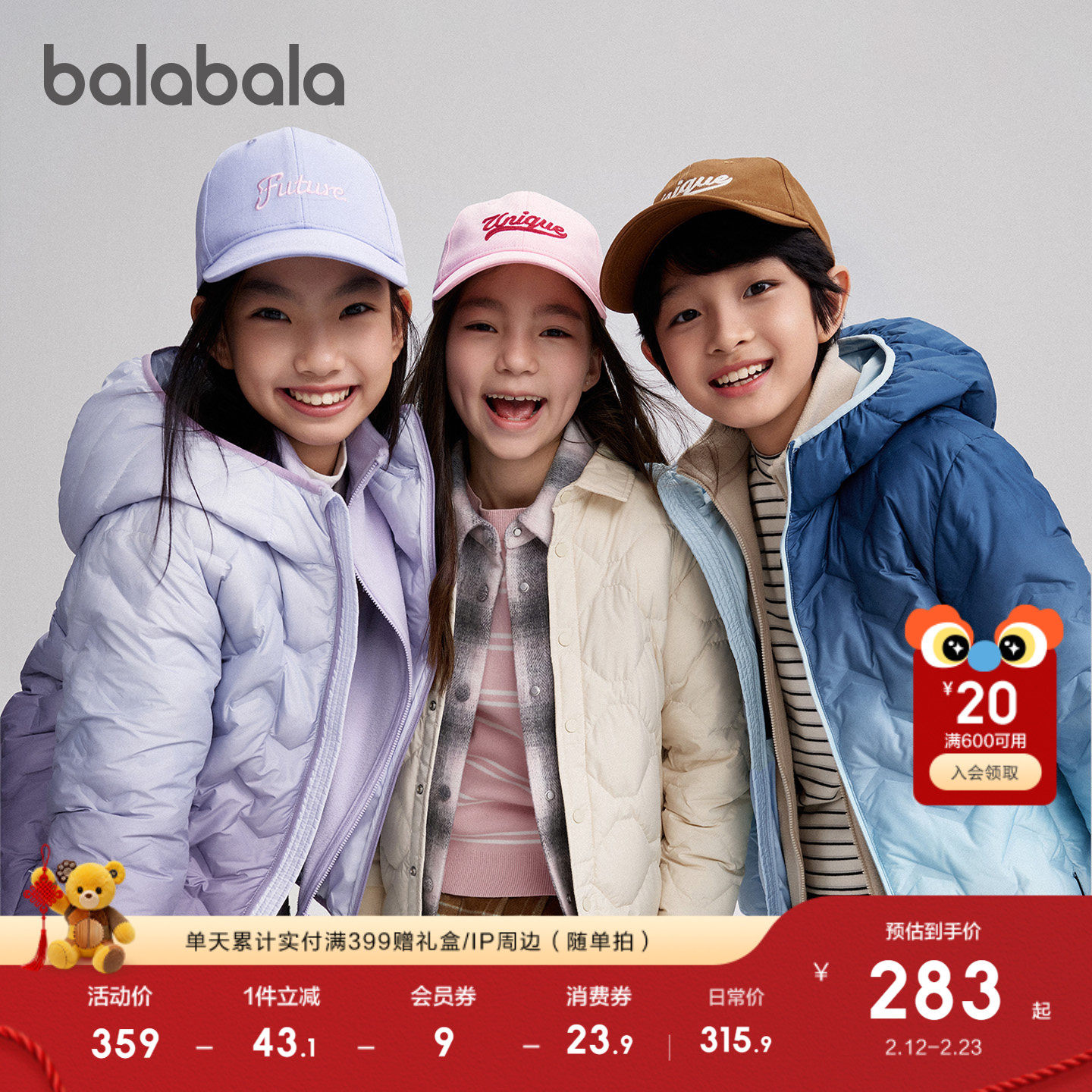 【商场同款】巴拉巴拉童装儿童轻薄羽绒服男女童2025冬装连帽外套