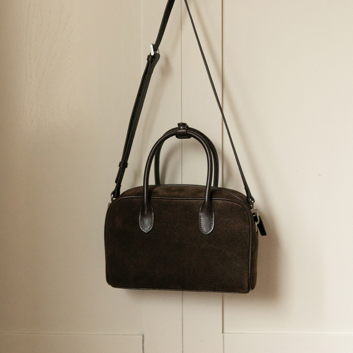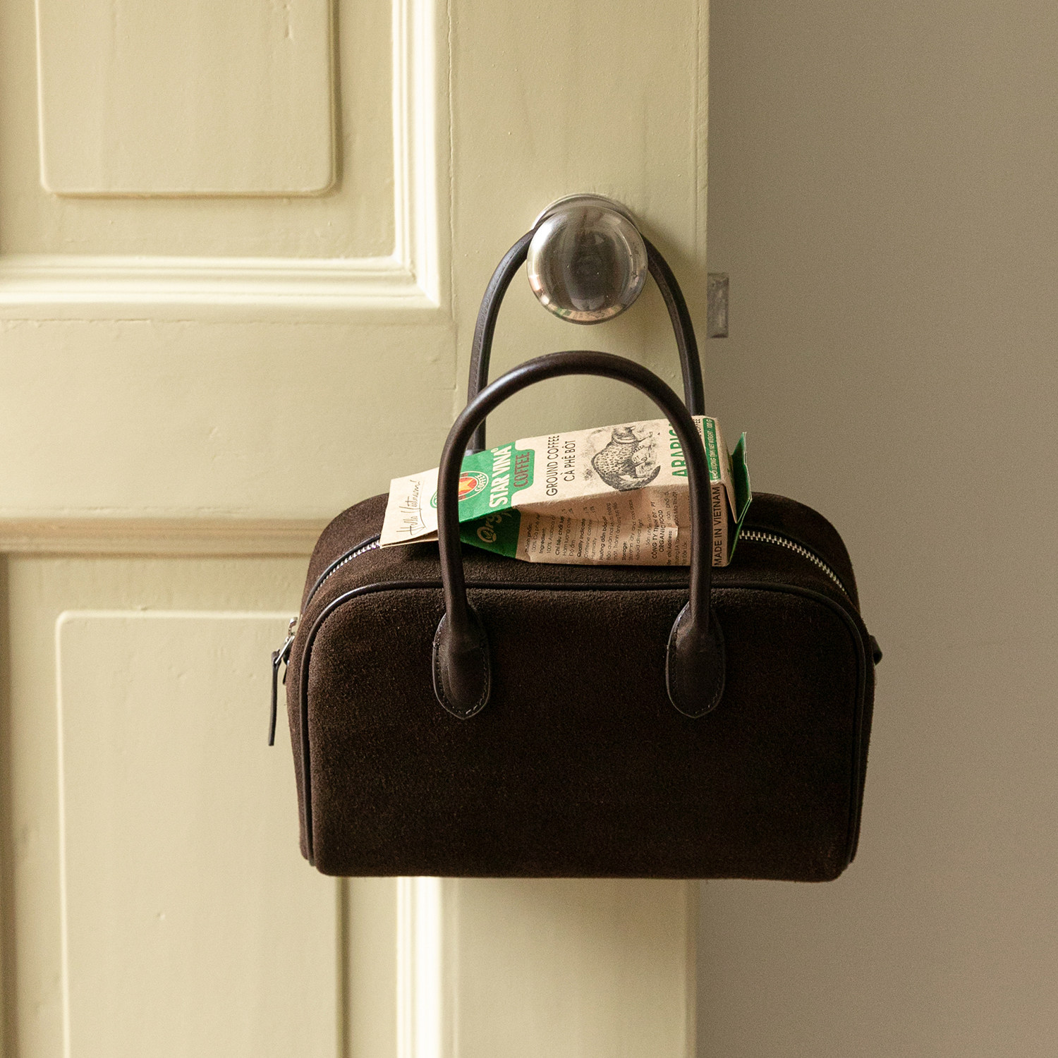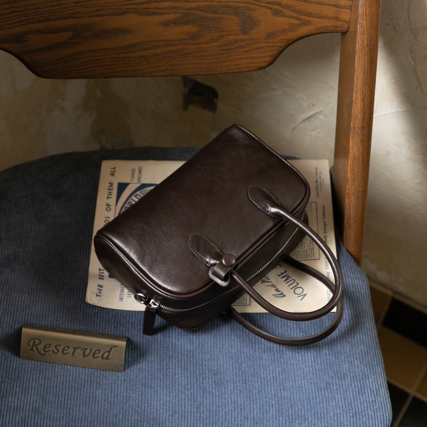 猴子家 植鞣牛皮复古保龄球包真皮女士手提小方包通勤单肩斜挎包