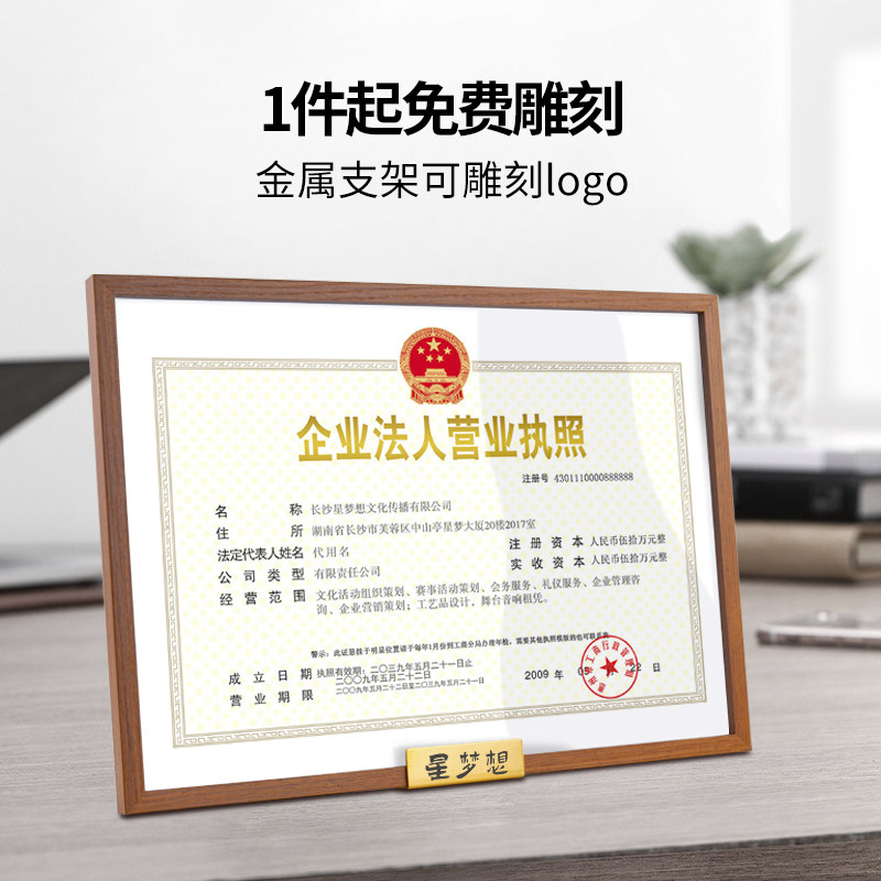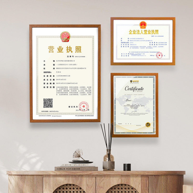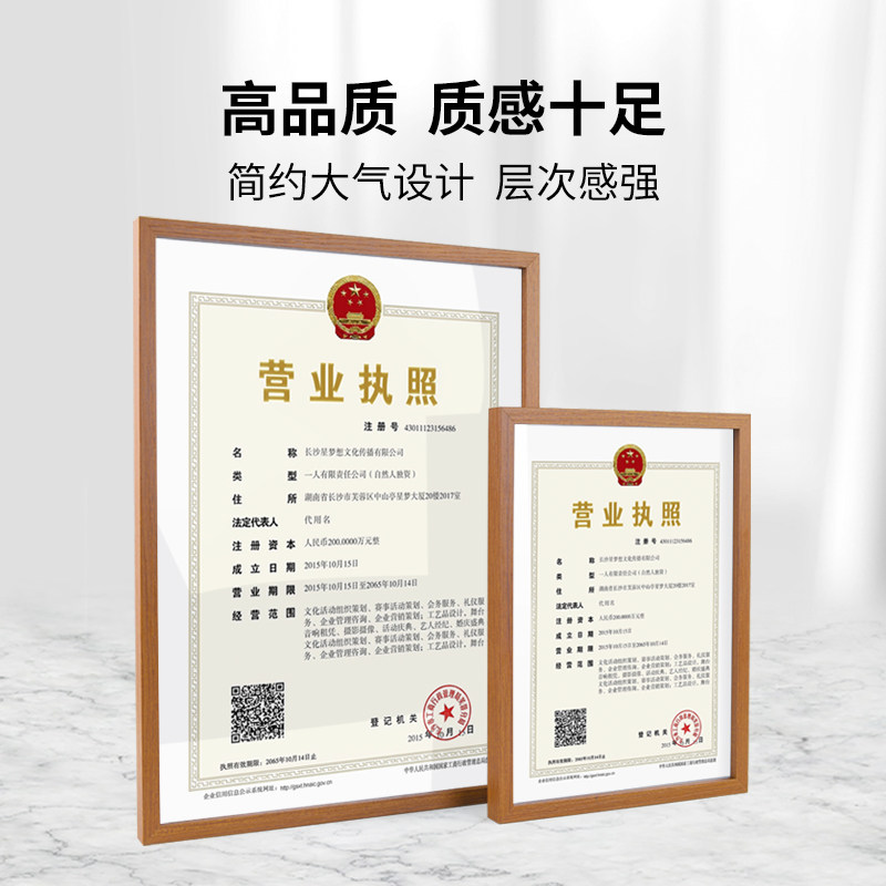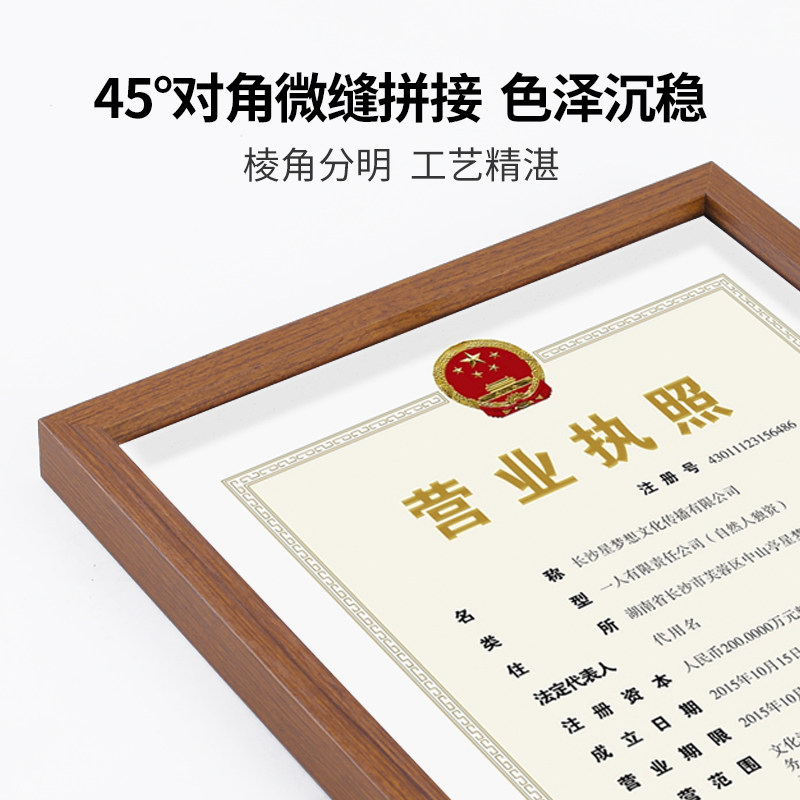 高档木质营业执照框正本副本挂墙三用相框荣誉高新专利证书框书法相框展示墙面海报展牌展板画框证件框挂式