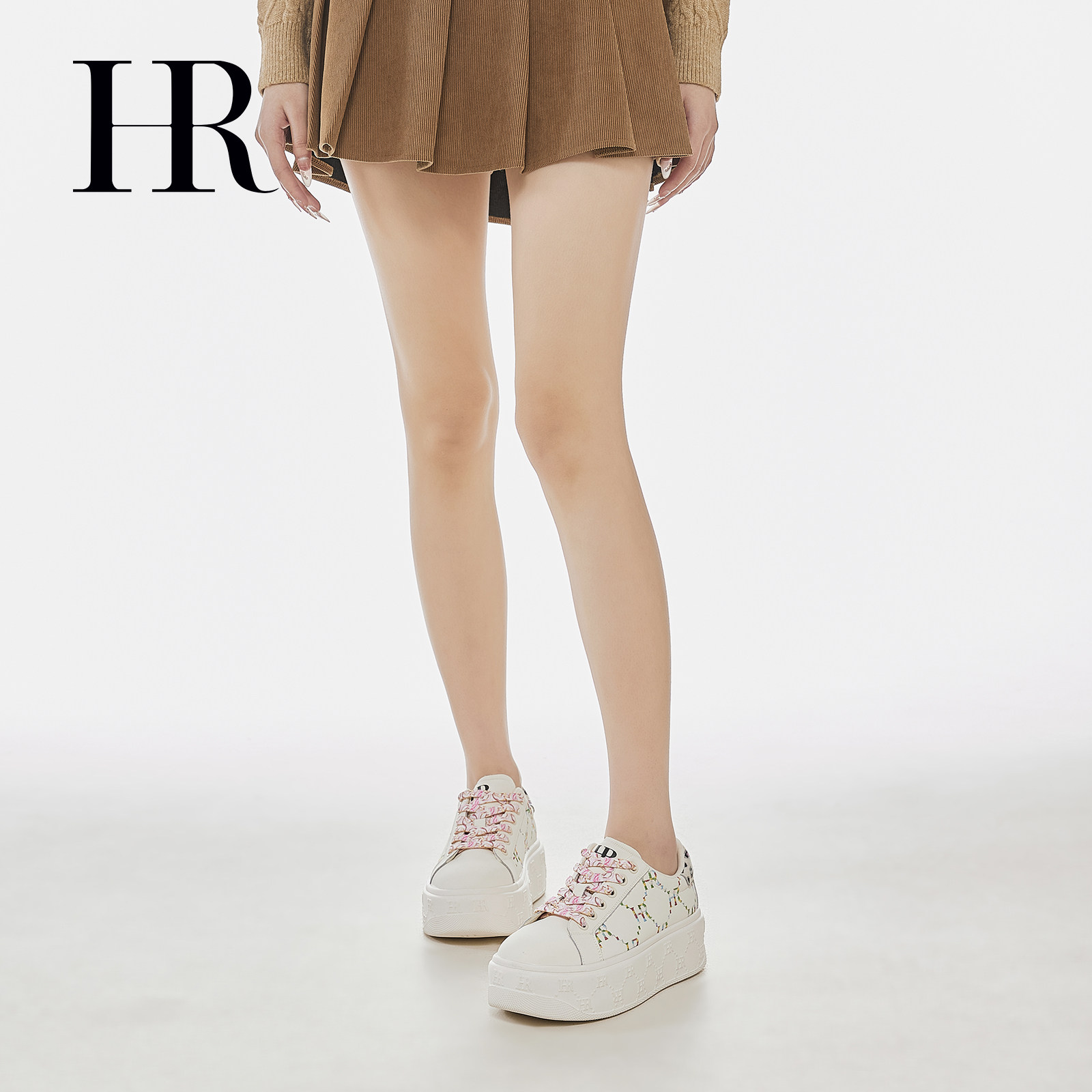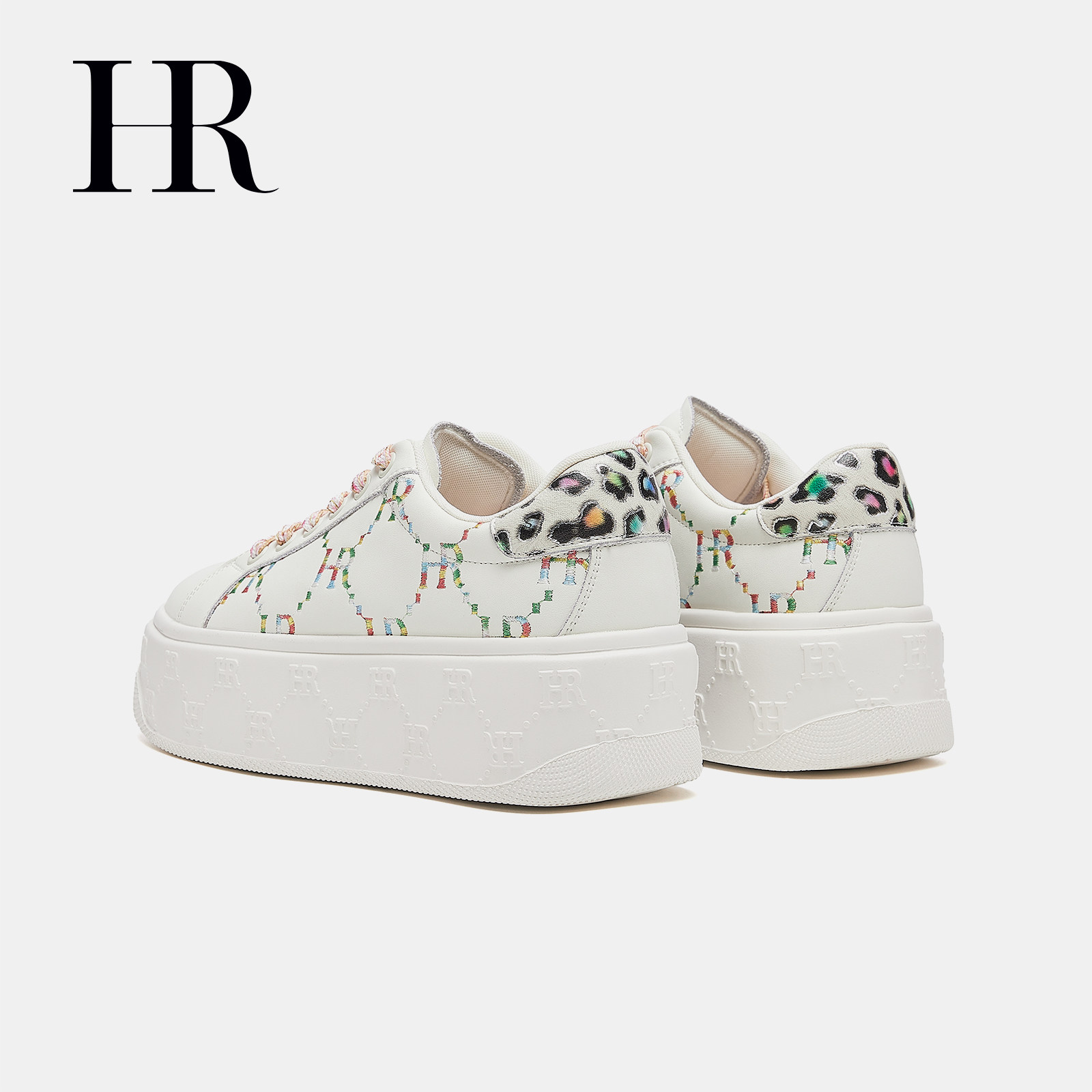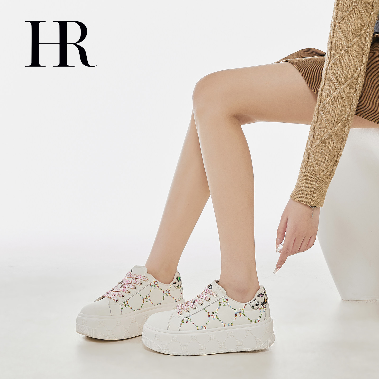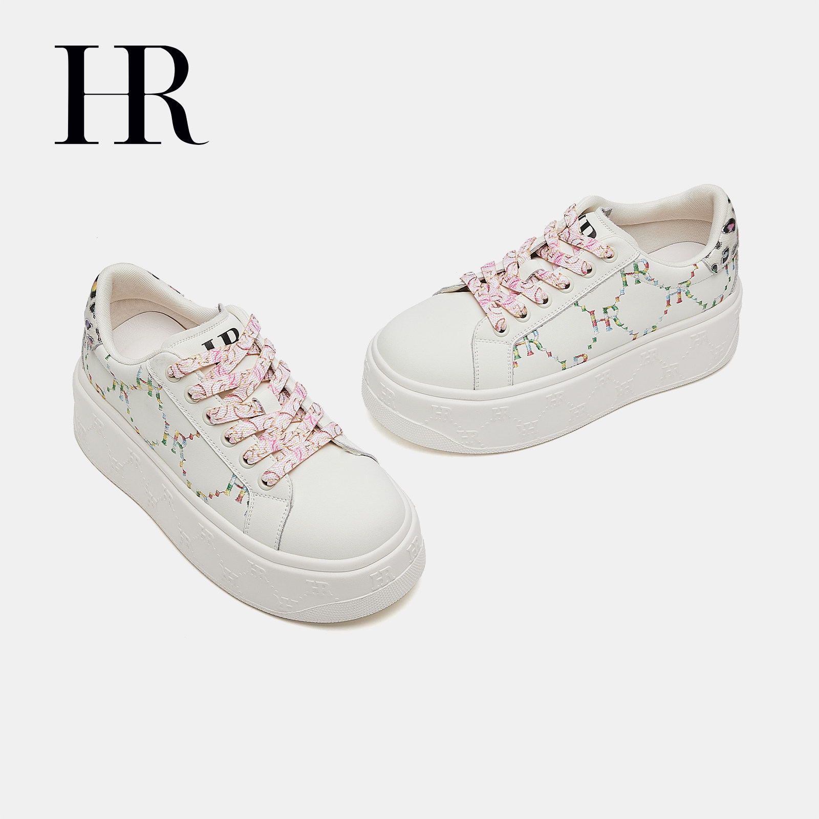 HR赫莲娜休闲板鞋女2026春季新款女鞋子厚底彩色刺绣粉鞋带小白鞋
