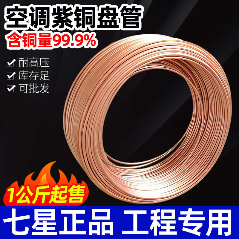 空调铜管加厚纯铜空心连接管410紫铜管空调盘管七星9毫米铜管10mm