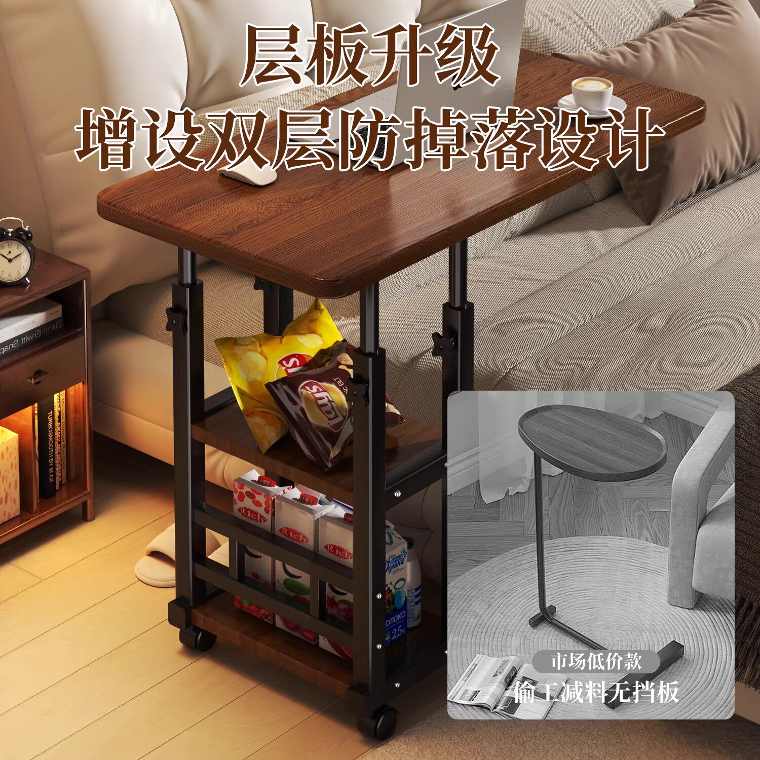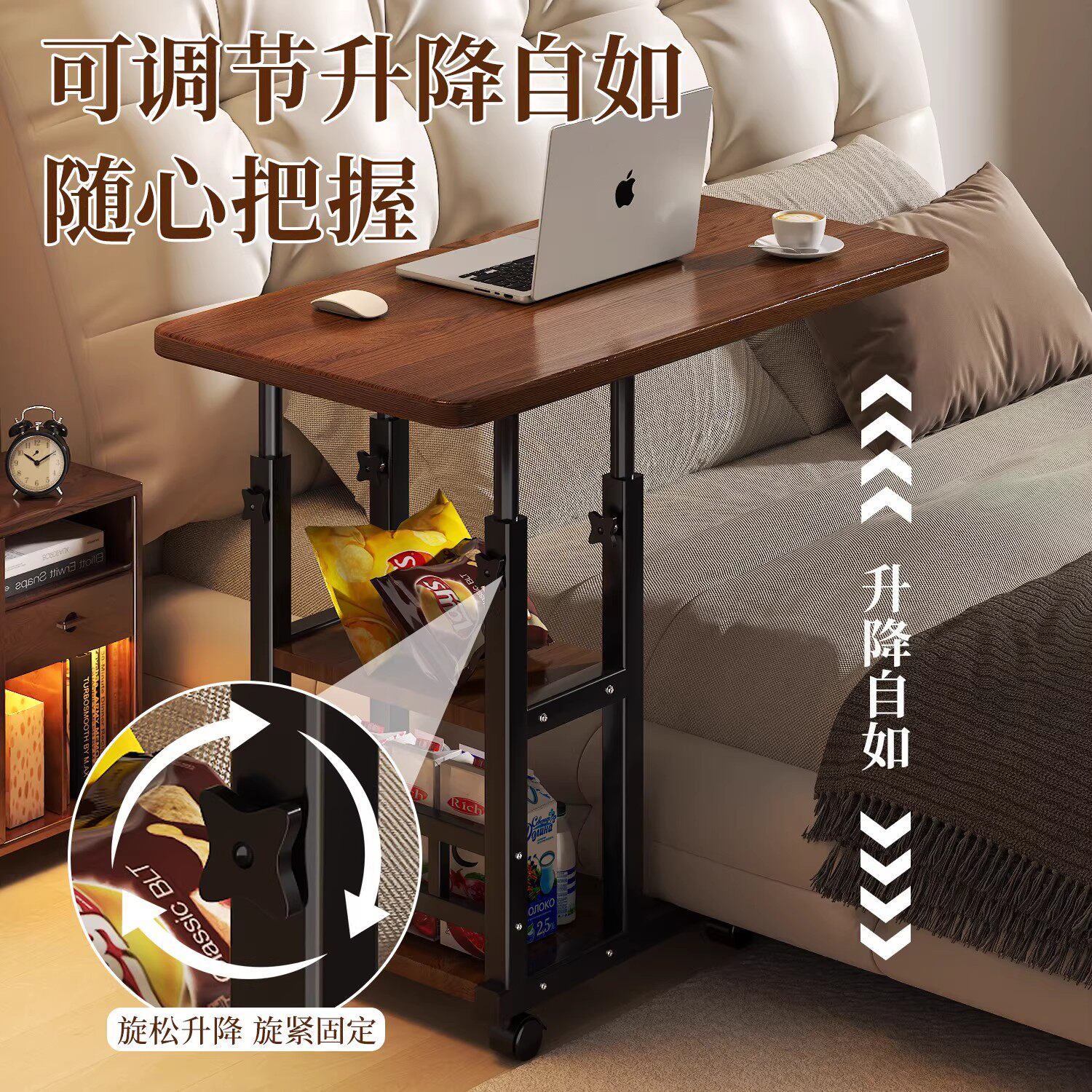 床边桌可移动升降电脑桌沙发边几折叠书桌卧室家用床上学习桌简易