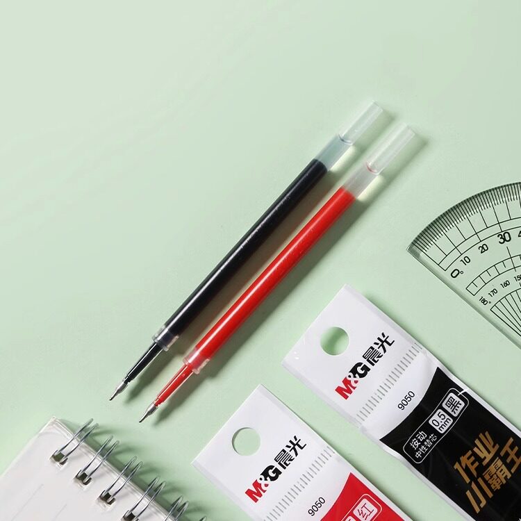 晨光作业小霸王按动中性笔加强全针管笔芯0.5mm速干水笔黑色芯考试专用签字笔圆珠笔按动式黑色红色替芯9050