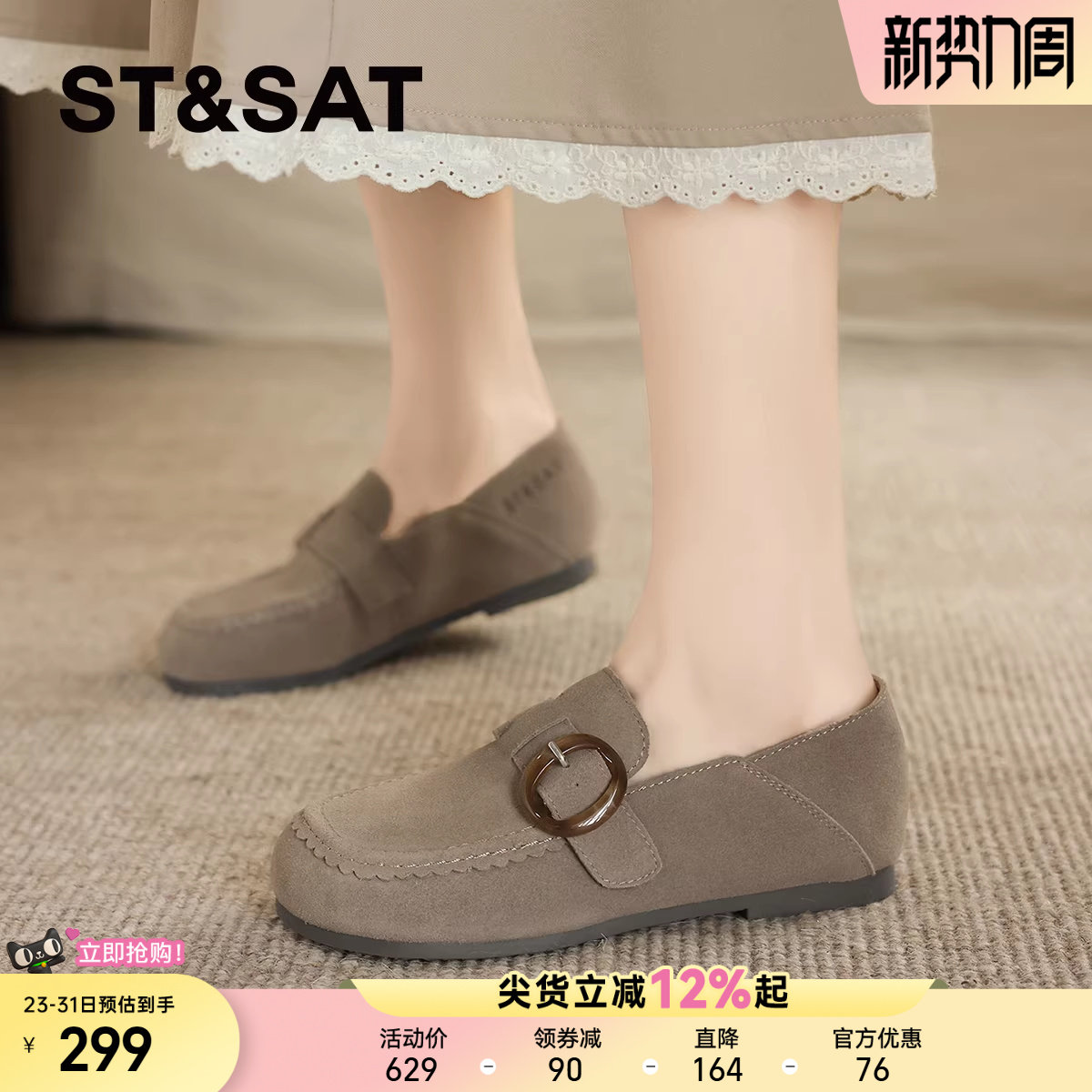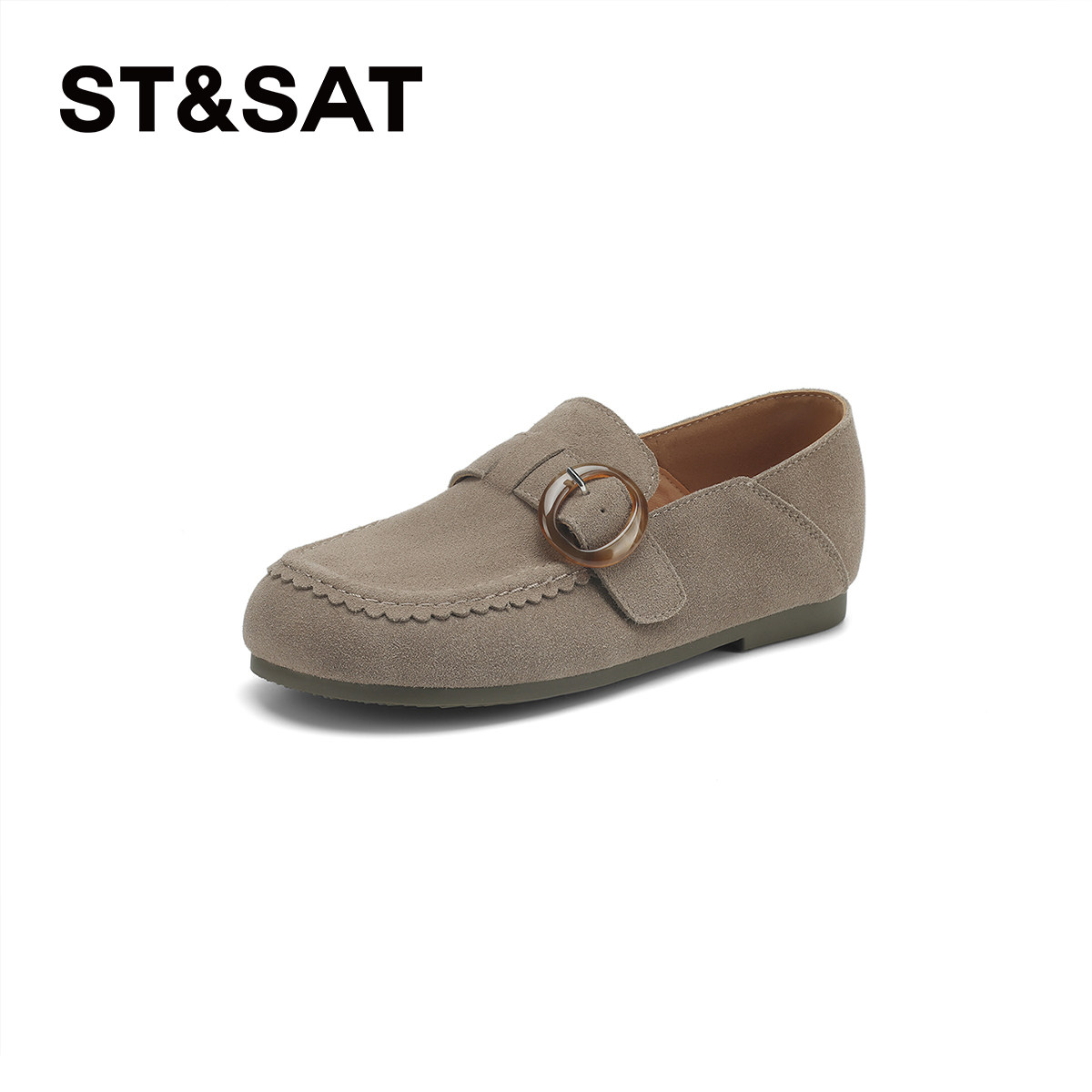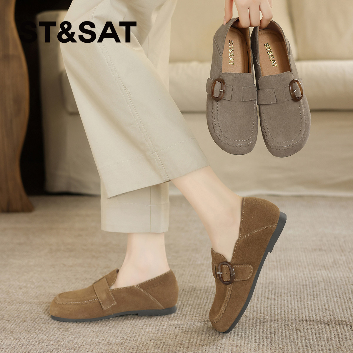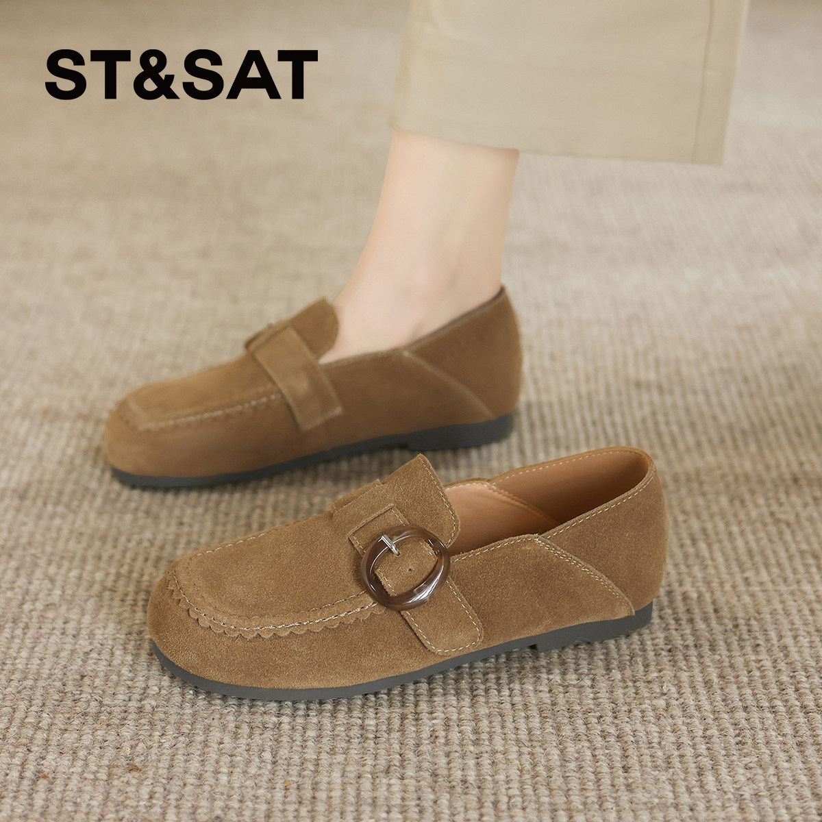 星期六复古真皮厚底勃肯鞋女2025秋季新款软底舒适豆豆鞋博肯单鞋
