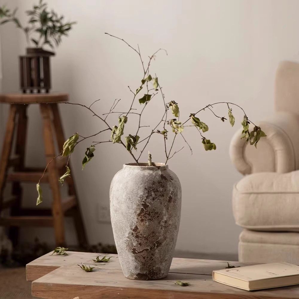 复古新中式陶罐侘寂风装饰品摆件玄关电视柜插花水培陶瓷花瓶粗陶