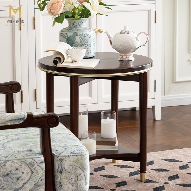 沙发边几全实木小圆几轻奢小茶几边柜侧边柜角几沙发桌