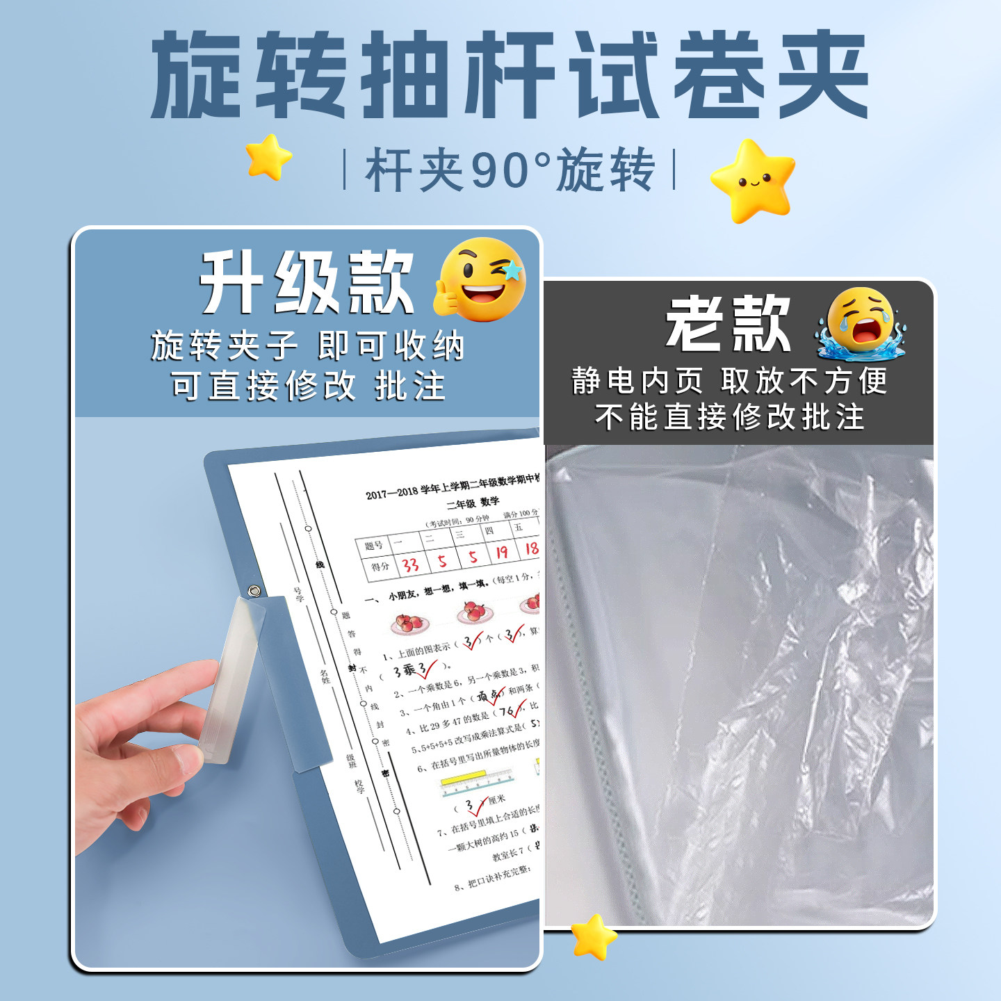 得力装试卷的收纳袋a3旋转拉杆夹初中生a4纸收纳夹卷子整理夹资料夹活页文件夹文件袋可放书包分类夹加厚双夹