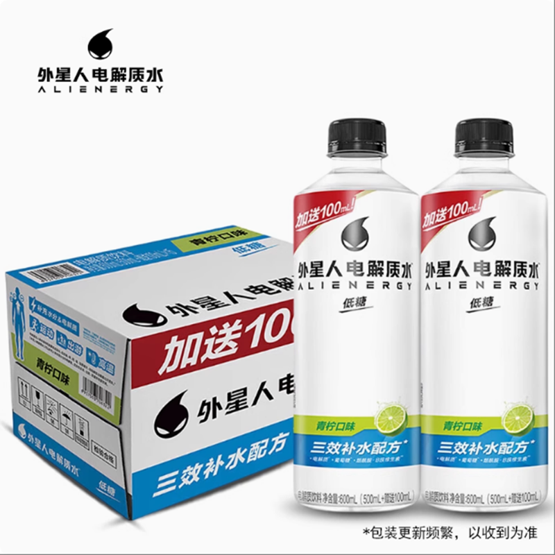 600ml外星人低糖电解质水4瓶装补水荔枝维生素椰子海盐混合青柠