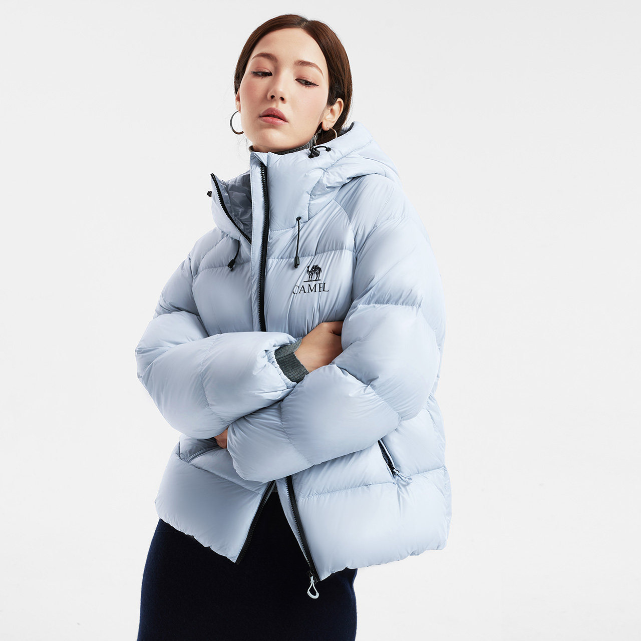 骆驼黑钻5PRO女装羽绒服短款2025冬季新款保暖连帽羽绒面包服加厚