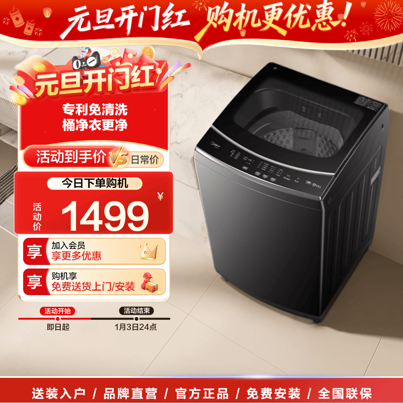 美的官方旗舰店15KG大容量除螨家用宿舍租房自动波轮洗脱洗衣机