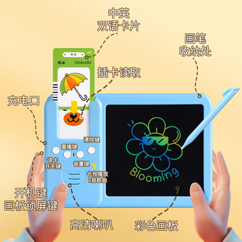 儿童插卡机二合一绘画板手写板卡片机双语单词故事益智早教玩具