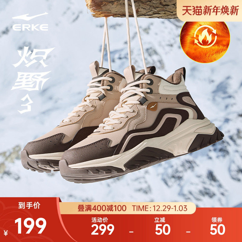 炽野3鸿星尔克男鞋冬季高帮棉鞋防滑保暖休闲鞋加厚雪地靴运动鞋