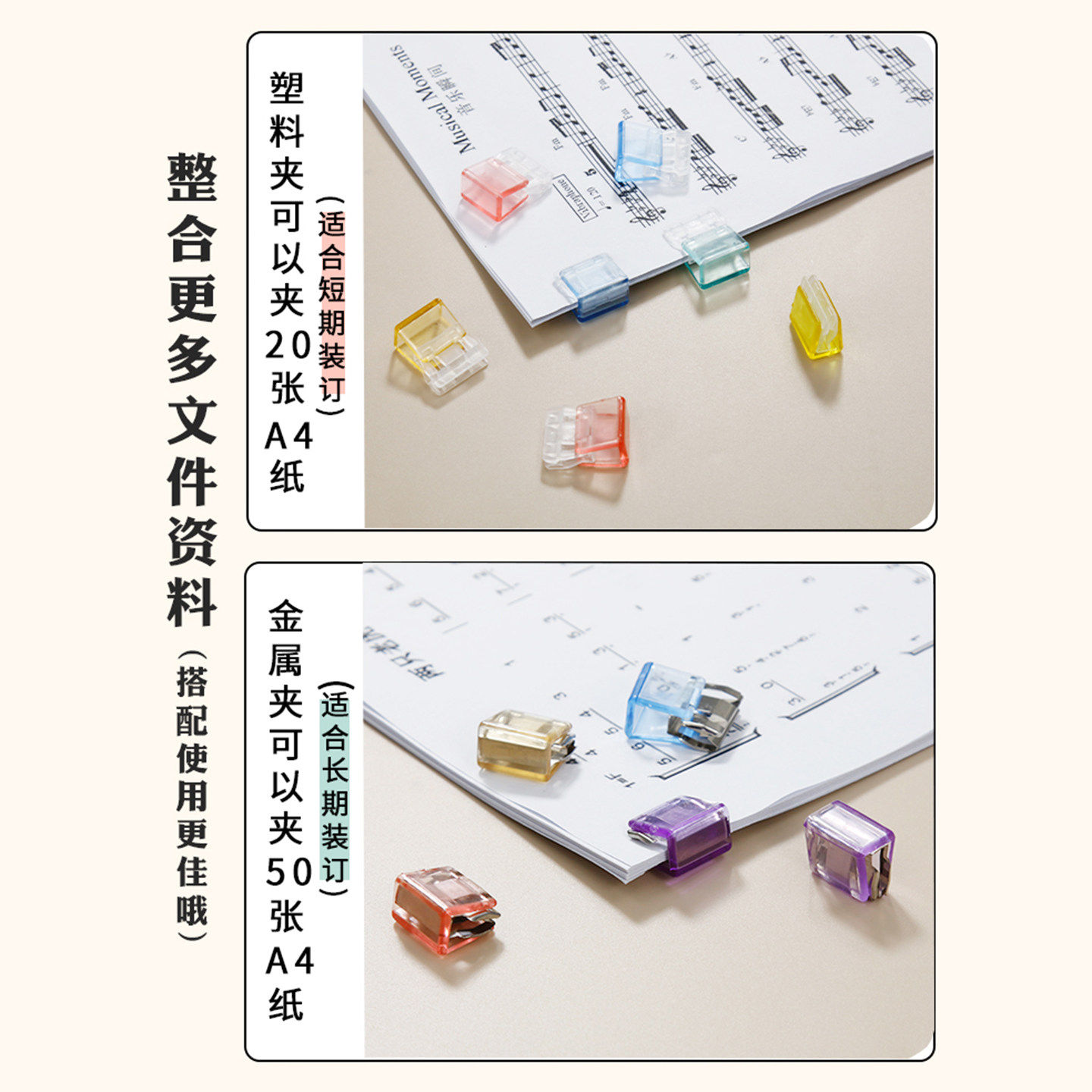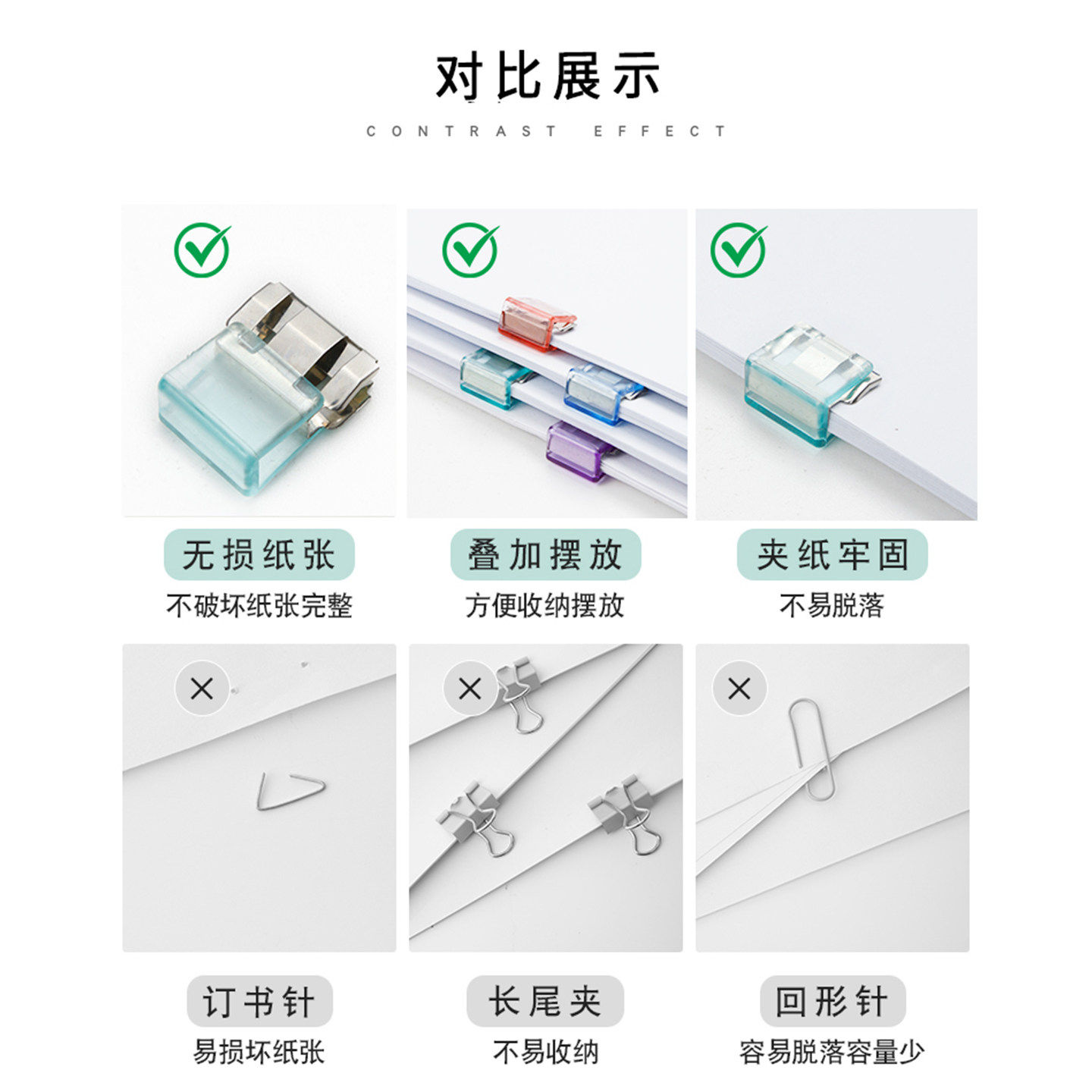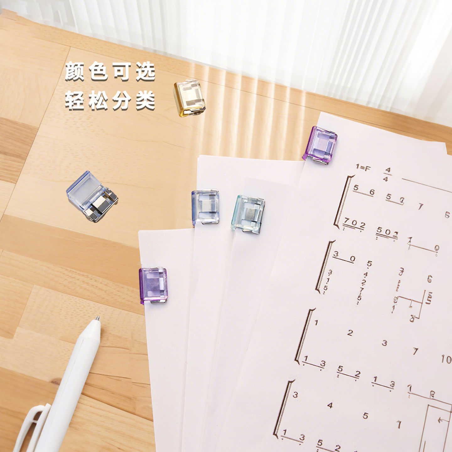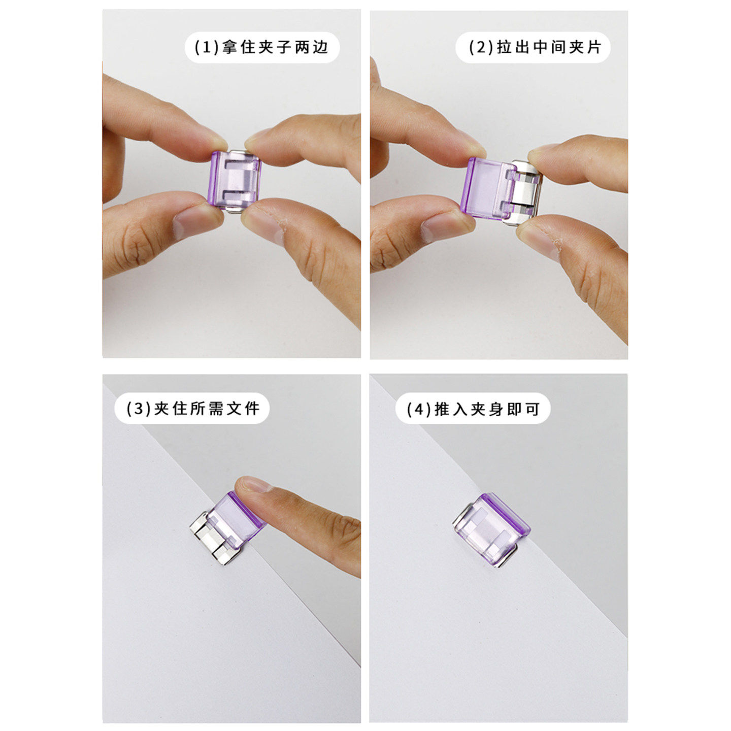 彩色推推夹不锈钢无痕推夹器透明夹办公文件学生试卷资料收纳固定