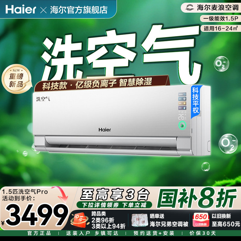 【海尔麦浪】洗空气科技款Pro空调家用1.5匹新一级变频新品挂机