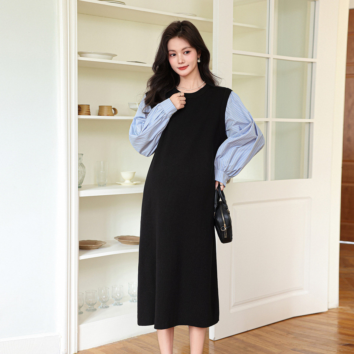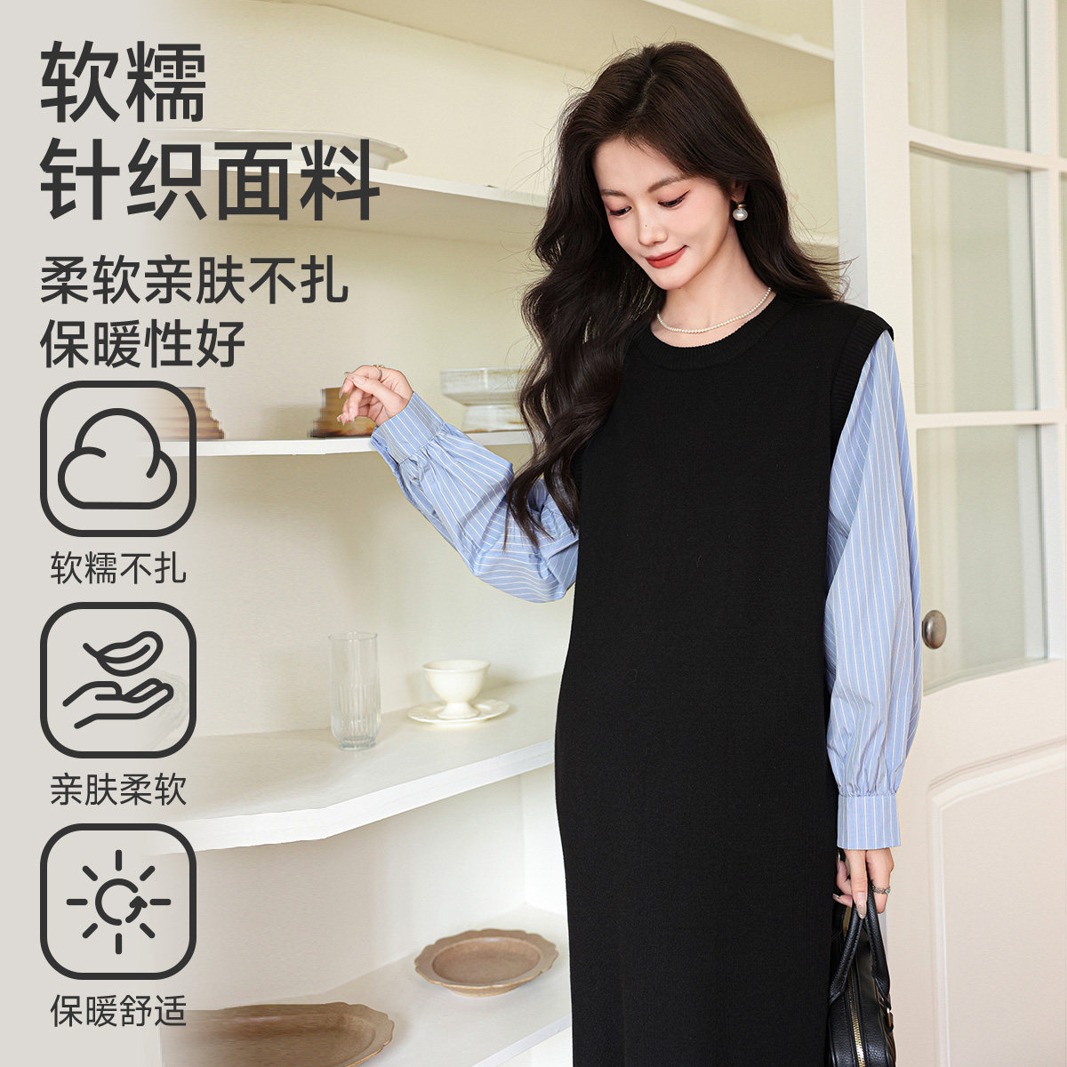 婧麒孕妇装秋冬连衣裙2025新款假两件拼接针织孕妇裙孕期通勤秋装