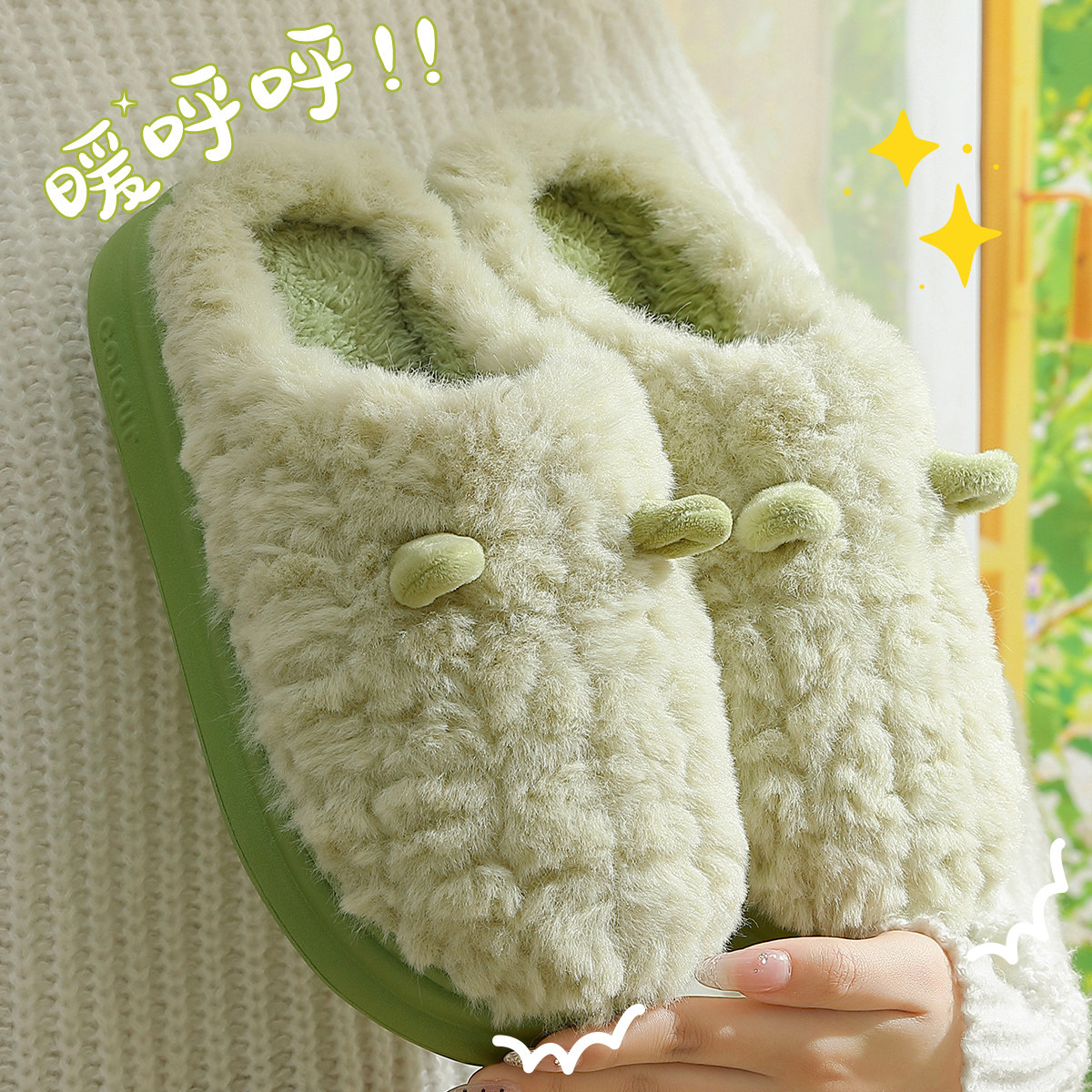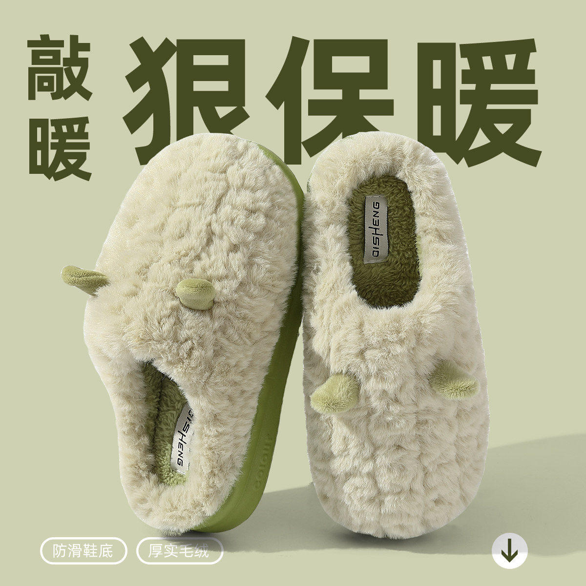 红豆棉拖鞋女士秋冬季2025新款家居室内保暖毛毛绒厚底拖鞋女加绒
