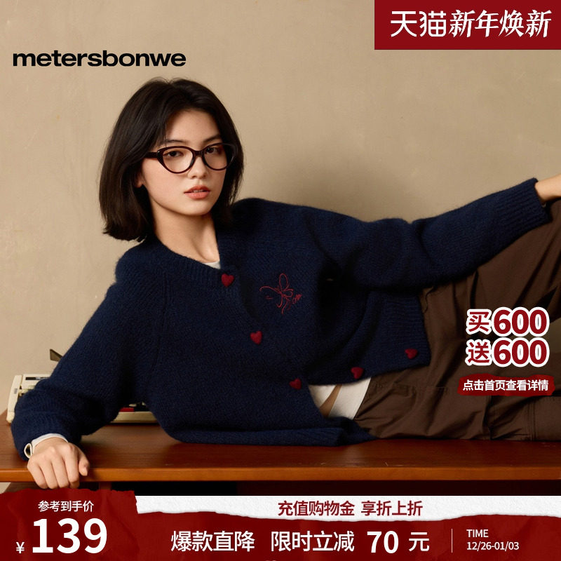 美特斯邦威毛衣女冬新款休闲针织毛开衫外套韩系加厚宽松慵懒