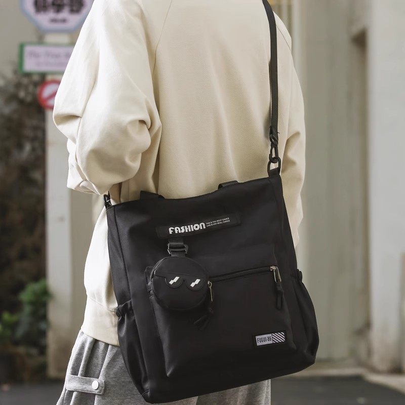 手提包手提袋学生拎书男大容量单肩斜挎包初中生补习补课书包新款