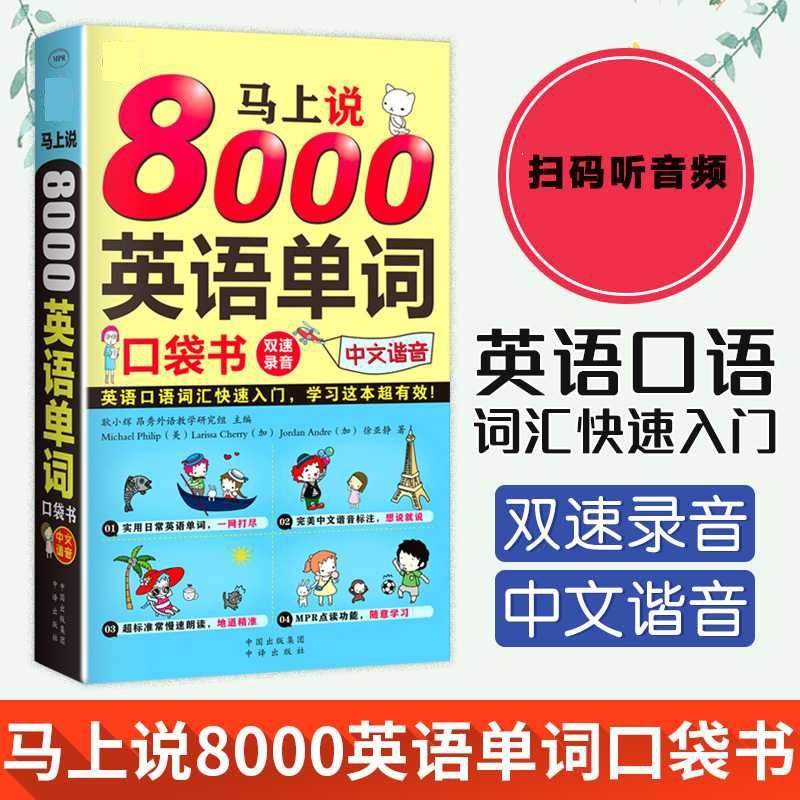 全2册英语口语马上说8000单词入门自学零基础教材会中文就会说英文的书学习日常对话书籍小学成人0基础学英语t旅游谐音科普汉语