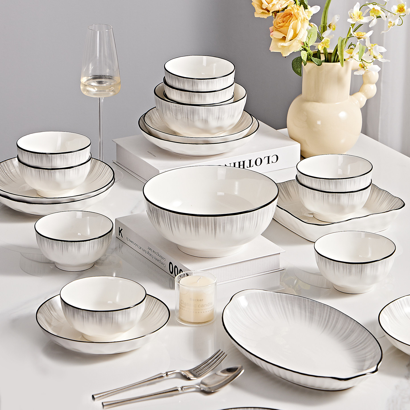 高级感碗碟套装家用2025新款高颜值餐具陶瓷碗盘子乔迁碗筷碗具