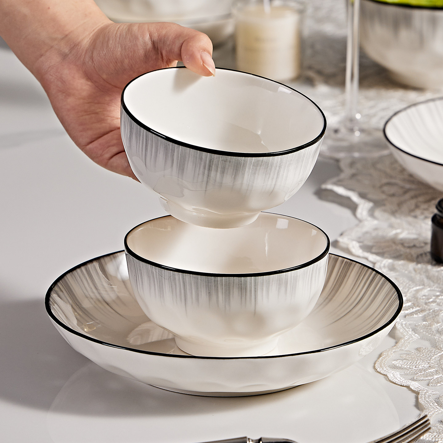 碗碟盘家用2026新款餐具组合饭碗简约现代陶瓷碗具汤碗菜盘碗盘