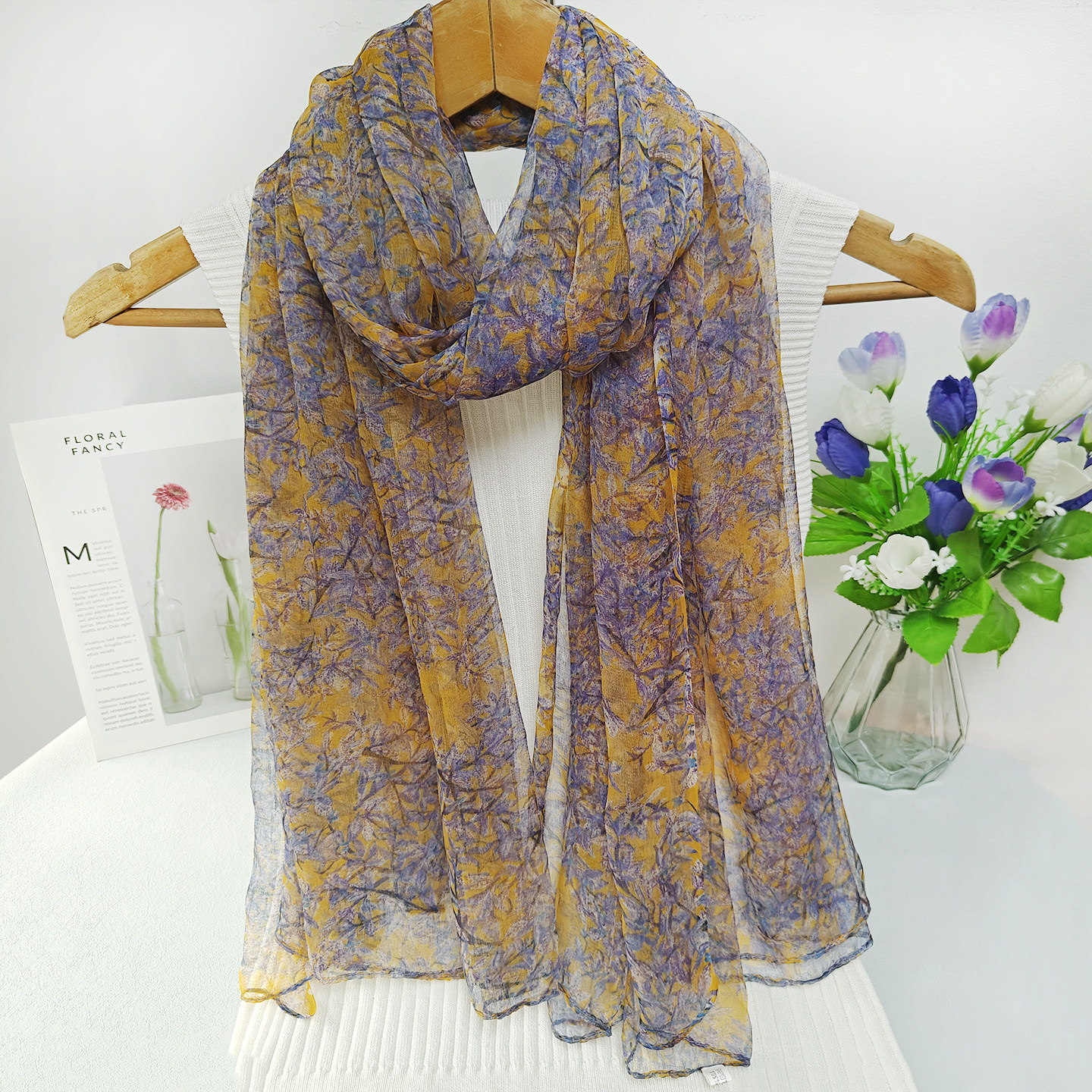 杭州丝绸印花真丝丝巾桑蚕丝纱巾夏秋季长款百搭披肩女薄款长围巾