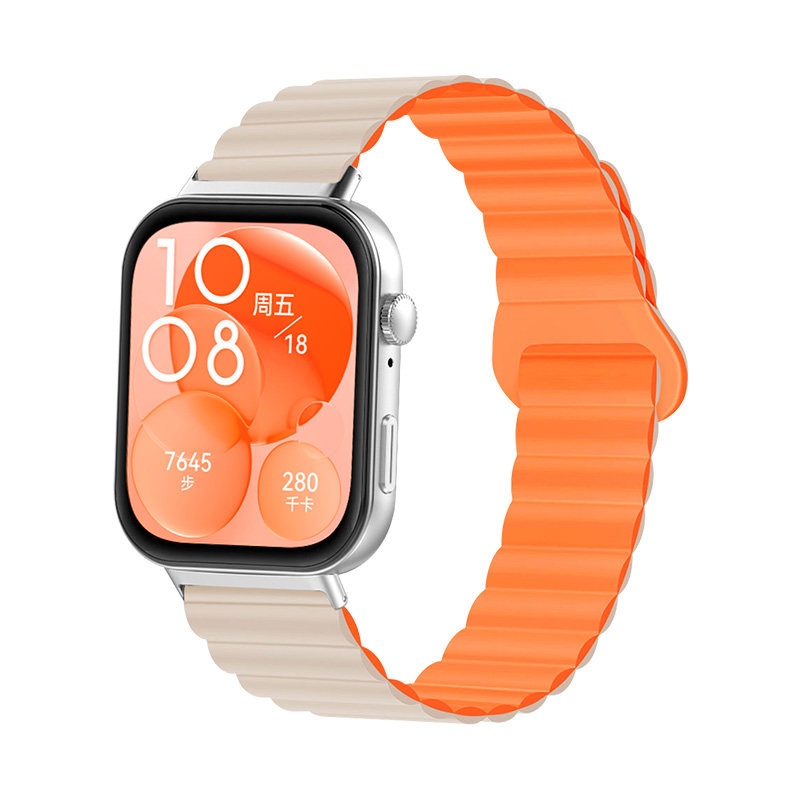 适用华为fit3表带硅胶磁吸fit3手表带透气秋冬watchfit3防水腕带运动夏季专用fit2男女新款配件舒适黑色粉色