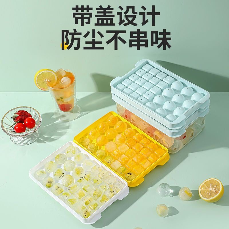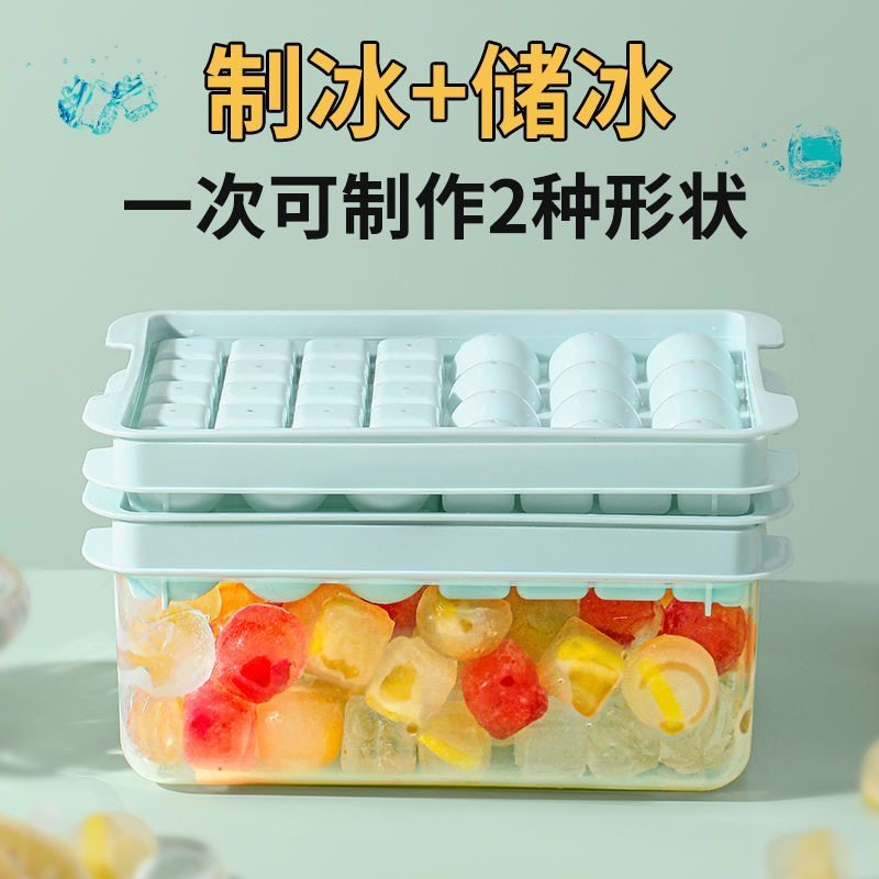 食品级冰块模具按压冰格家用冰箱自制冰块储存盒带盖冻冰块神器