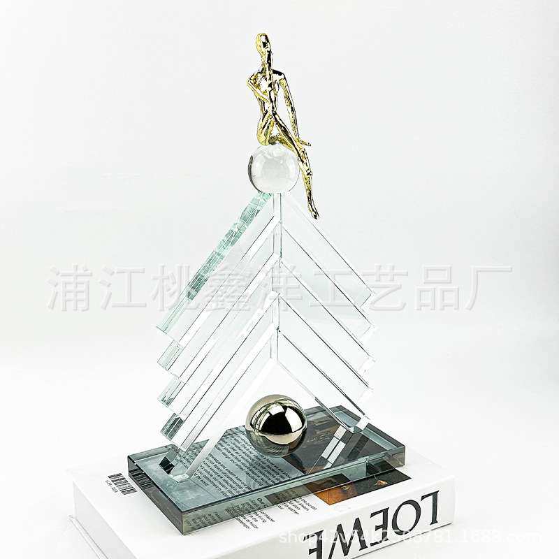 轻奢百搭箭头小金人水晶摆件桌面客厅玄关民宿别墅书房家居家饰品