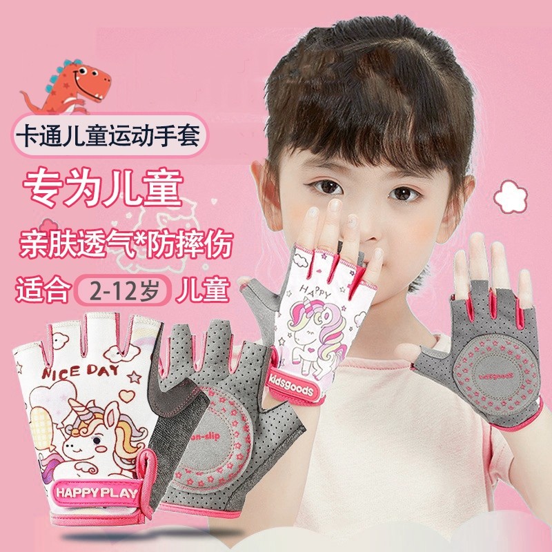 单杠儿童防滑手套运动骑行薄款透气半指男女童平衡车轮滑小孩健身