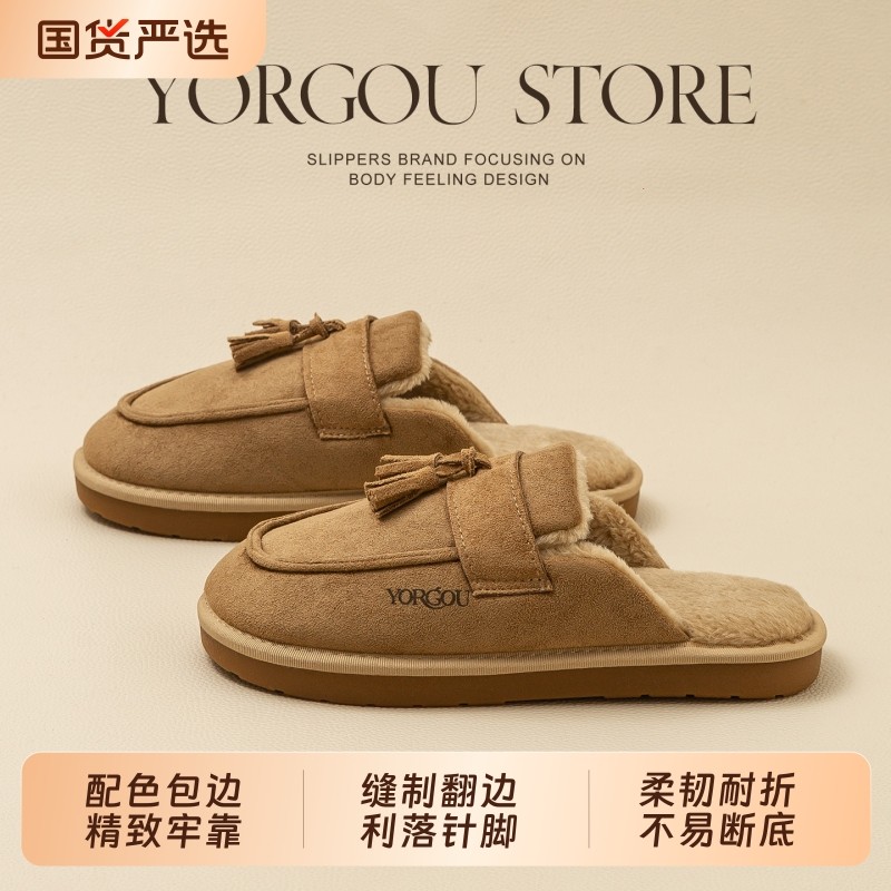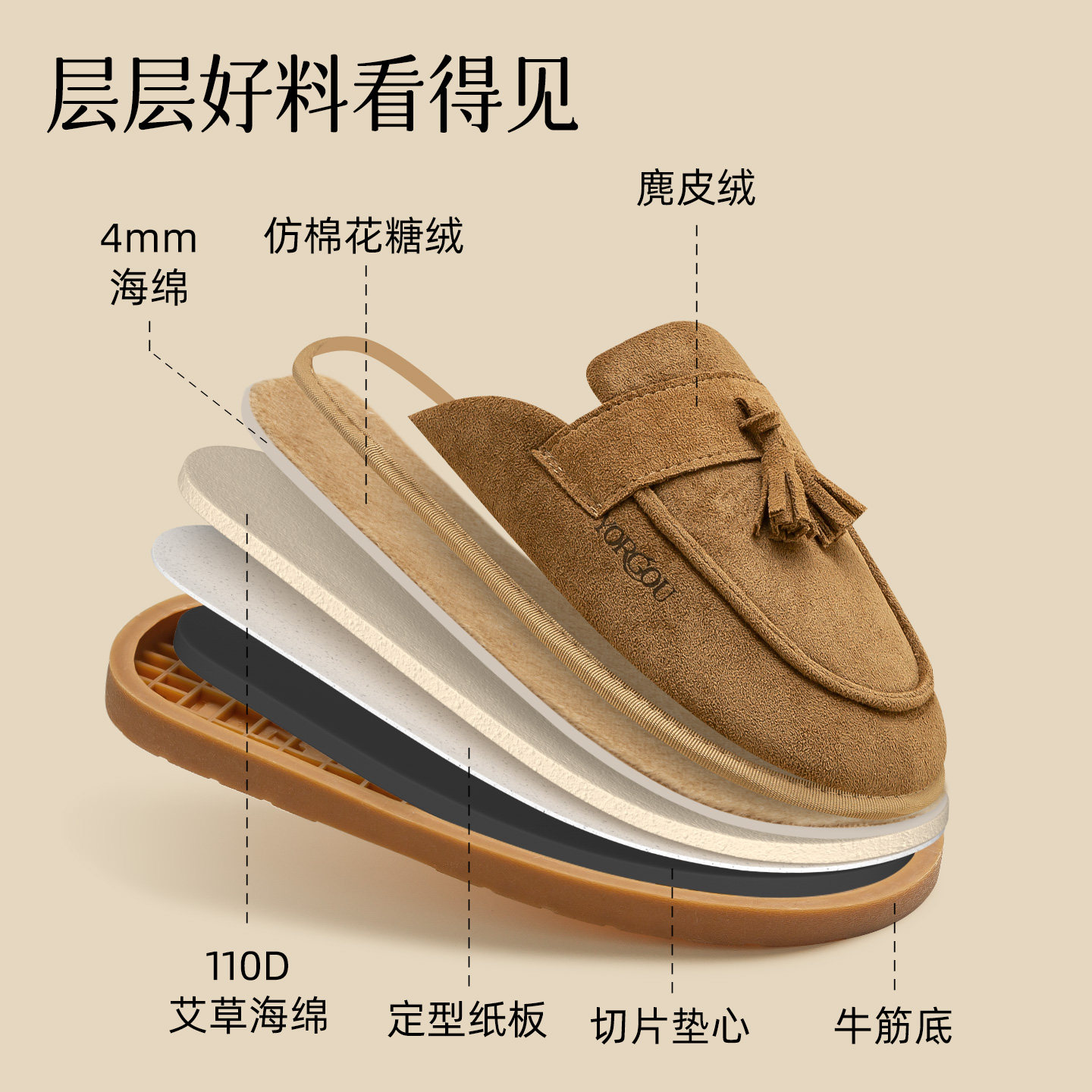 秋冬季2025新款翻半包跟棉拖加绒保暖情侣外穿毛毛绒厚底防滑居家