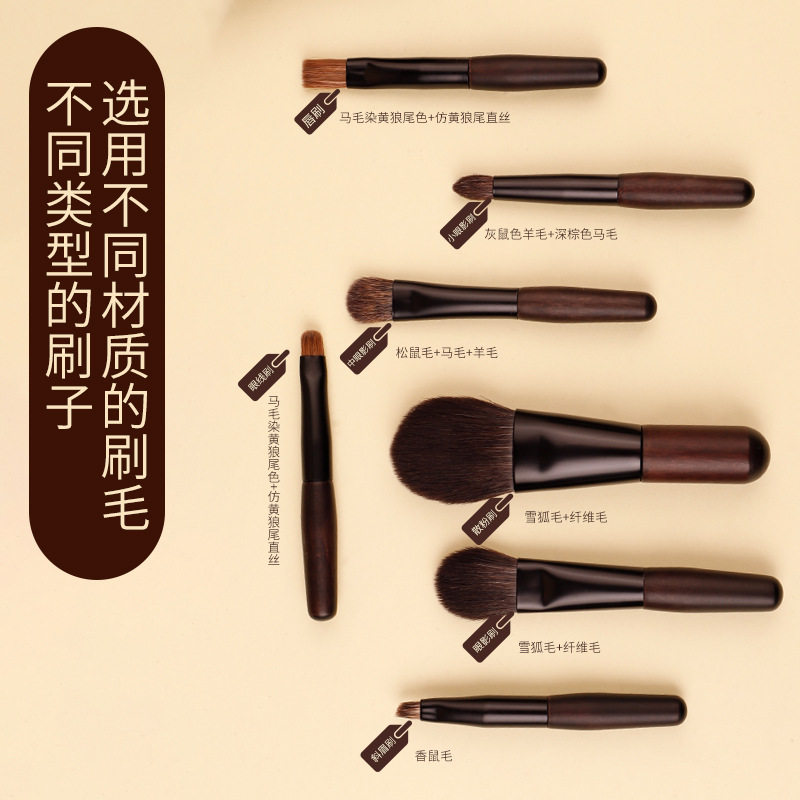 my destiny/米蒂斯迷你化妆刷 动物毛7支便携刷实木腮红眼影刷