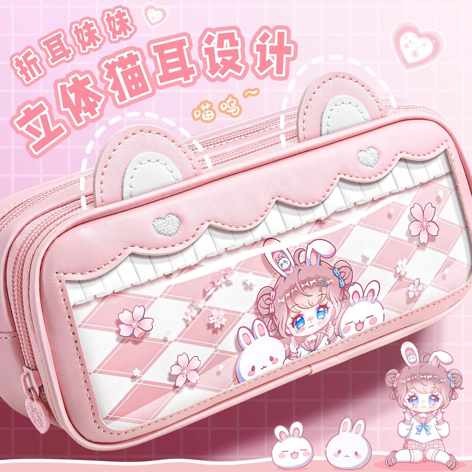 折耳妹妹猫耳笔袋大容量2025新款ins铅笔袋立体初中女生文具盒女孩款小学生网红儿童多功能高颜值铅笔盒笔袋