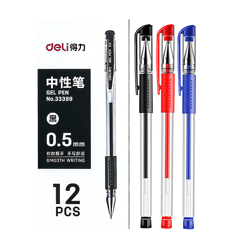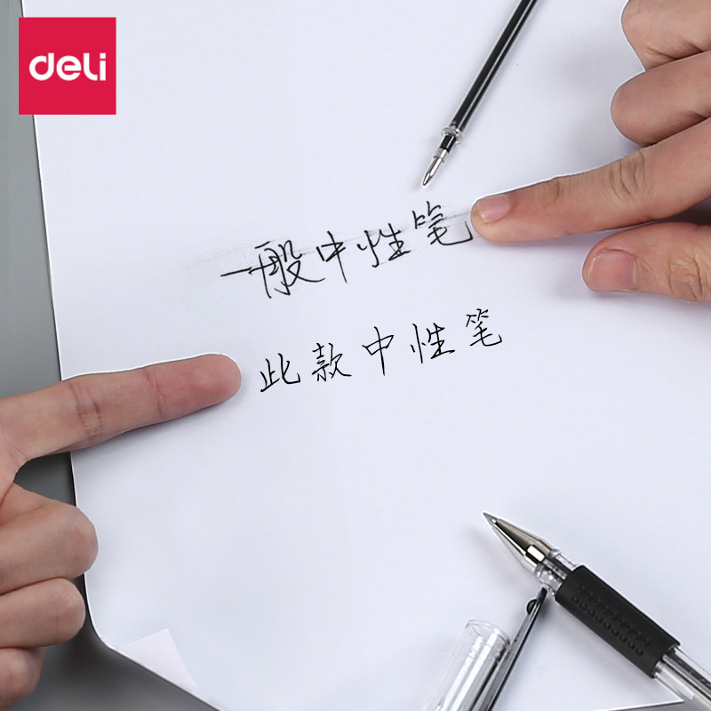 得力中性笔水笔学生用签字笔水性碳素笔黑笔0.5mm笔芯考试专用教师红色批改圆珠笔办公用品文具批发中性笔
