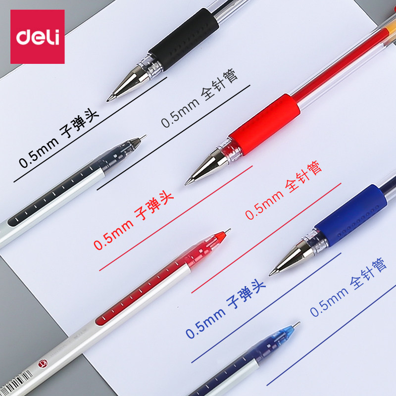 得力文具中性笔按动笔黑色0.5子弹头红笔学生用可定制笔广告笔企业展会礼品笔刻字商务圆珠笔s01升级超越k35
