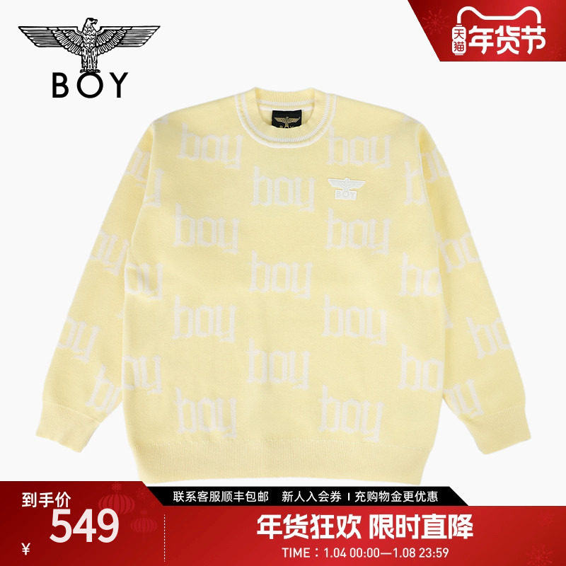 BOYLONDON春季男女同款满印休闲潮牌圆领套头针织毛衣N60006
