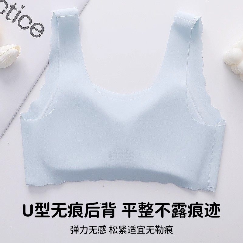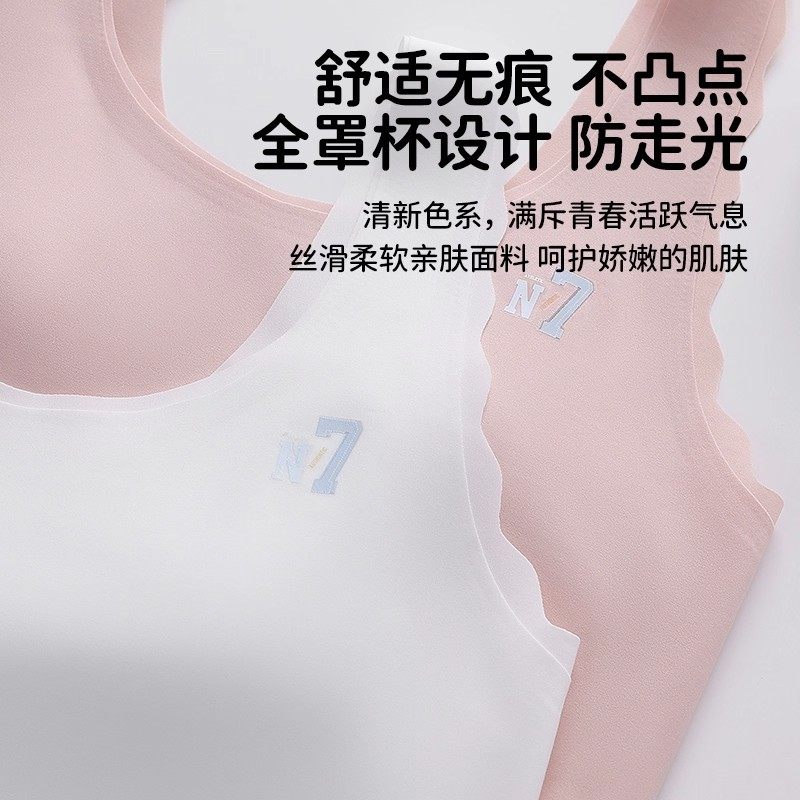 发育期初中生冰丝无痕薄款带胸垫一体固定杯防震防凸点运动文胸女
