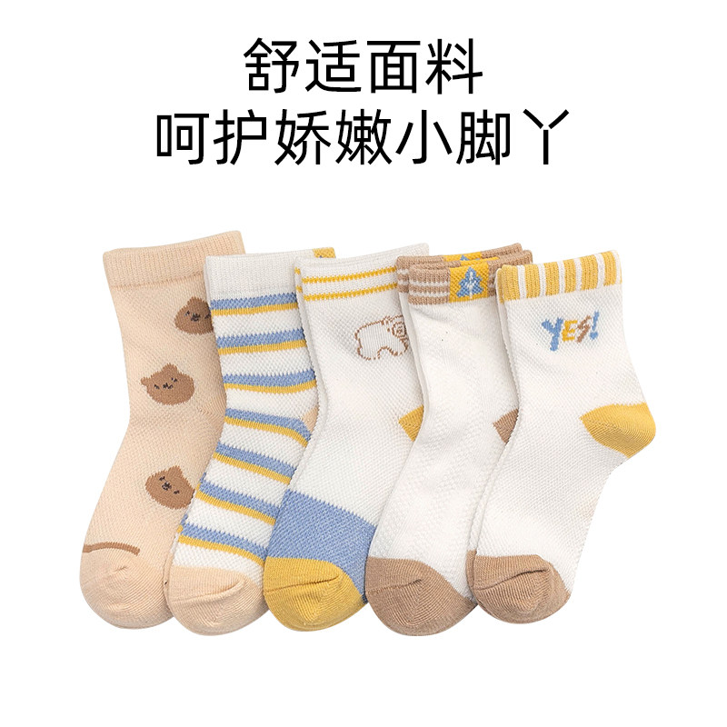 婧麒儿童袜子夏季薄款男宝宝女童婴儿夏天透气网眼中筒袜短袜春秋