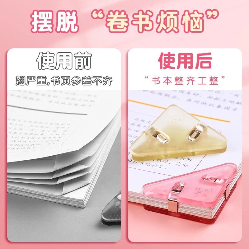 得力多功能透明三角边角夹小学生防卷边试卷夹收纳整理资料夹子文具固定书夹办公用品体检票据发票长尾夹大号