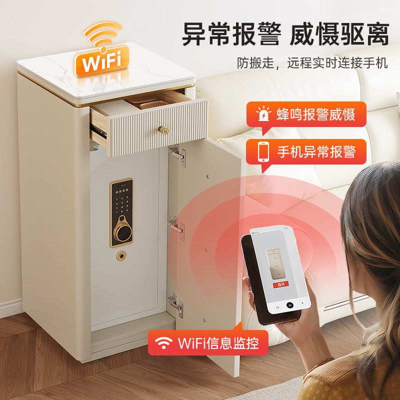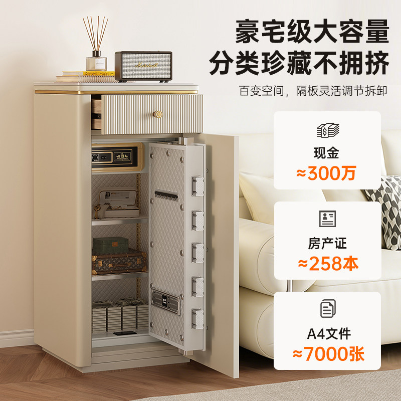虎牌床头保险柜家用2026新款隐藏式防盗保险箱五斗柜106cm高小型家庭抽屉大容量隐形指纹密码220斤搬不走柜子