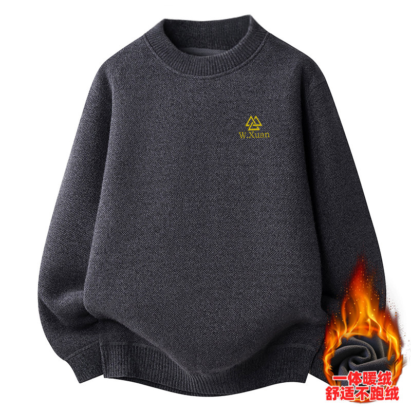 雪尼尔加绒加厚一体绒毛衣秋冬新款男士针织衫休闲贴身内搭薄款