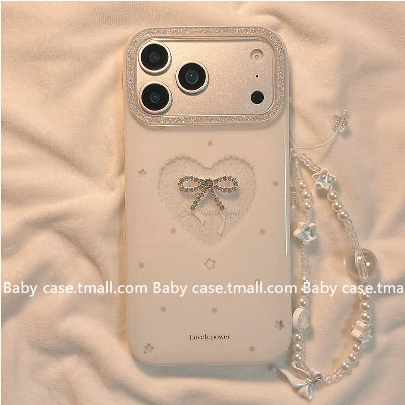 北比ins韩风闪粉镂空爱心蝴蝶结适用苹果17promax手机壳iphone16pro新款15少女17带链条14pm简约16创意13全包